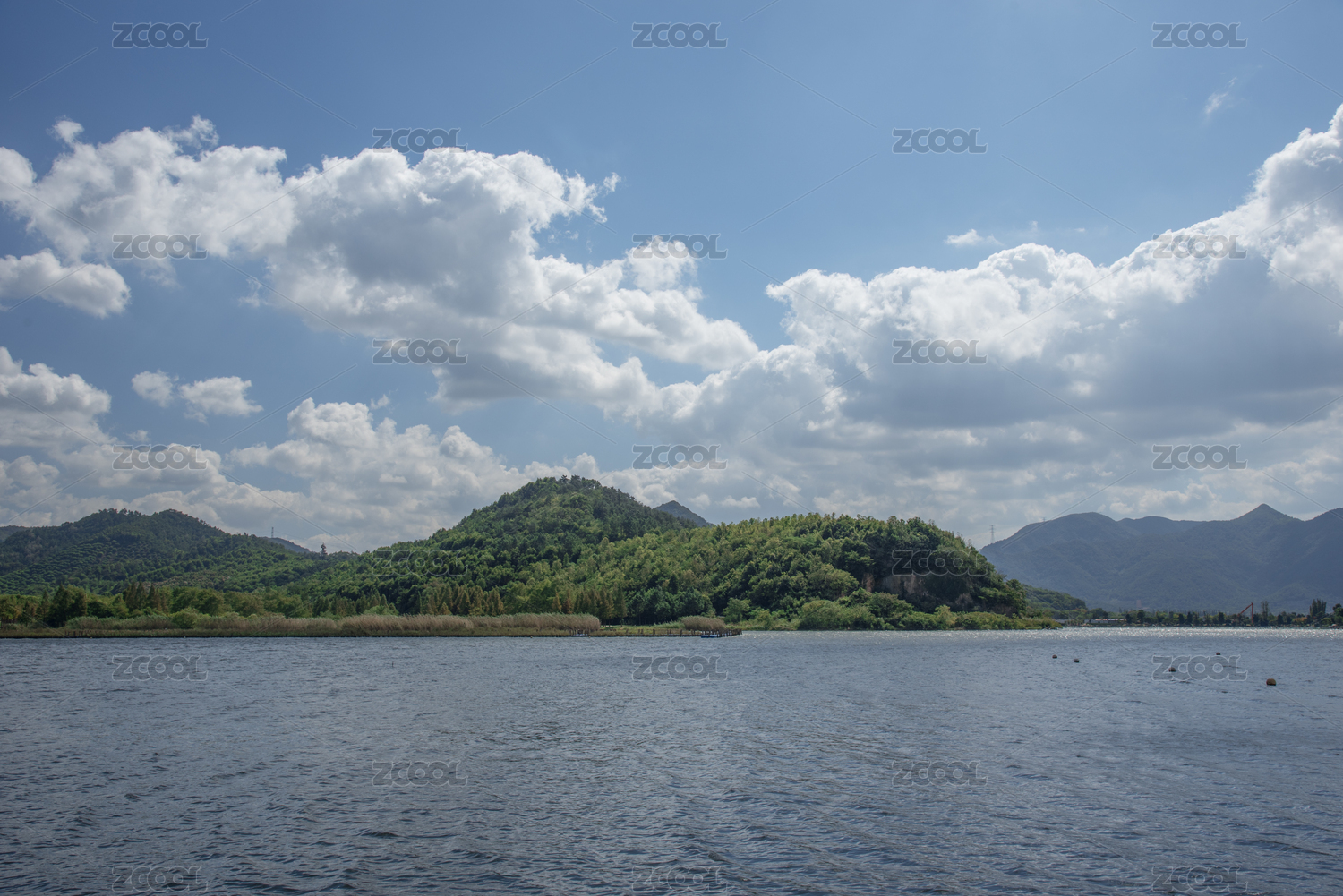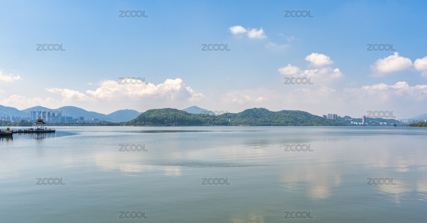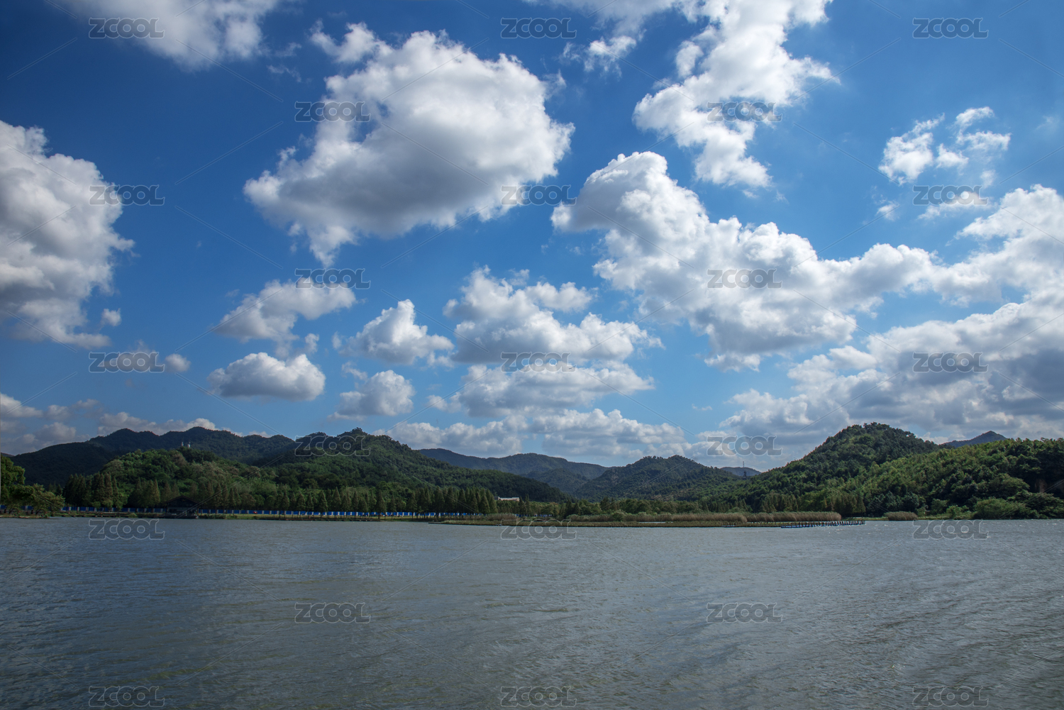 蓝天白云下的中国浙江宁波东钱湖湿地公园
