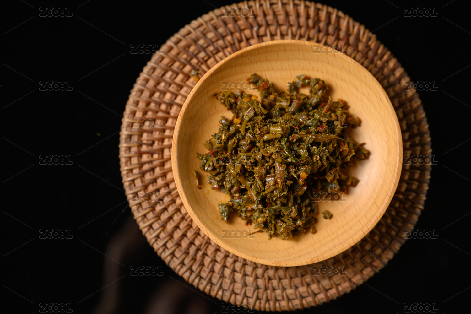 桌面上的盘子里的美味可口的凉拌香椿芽