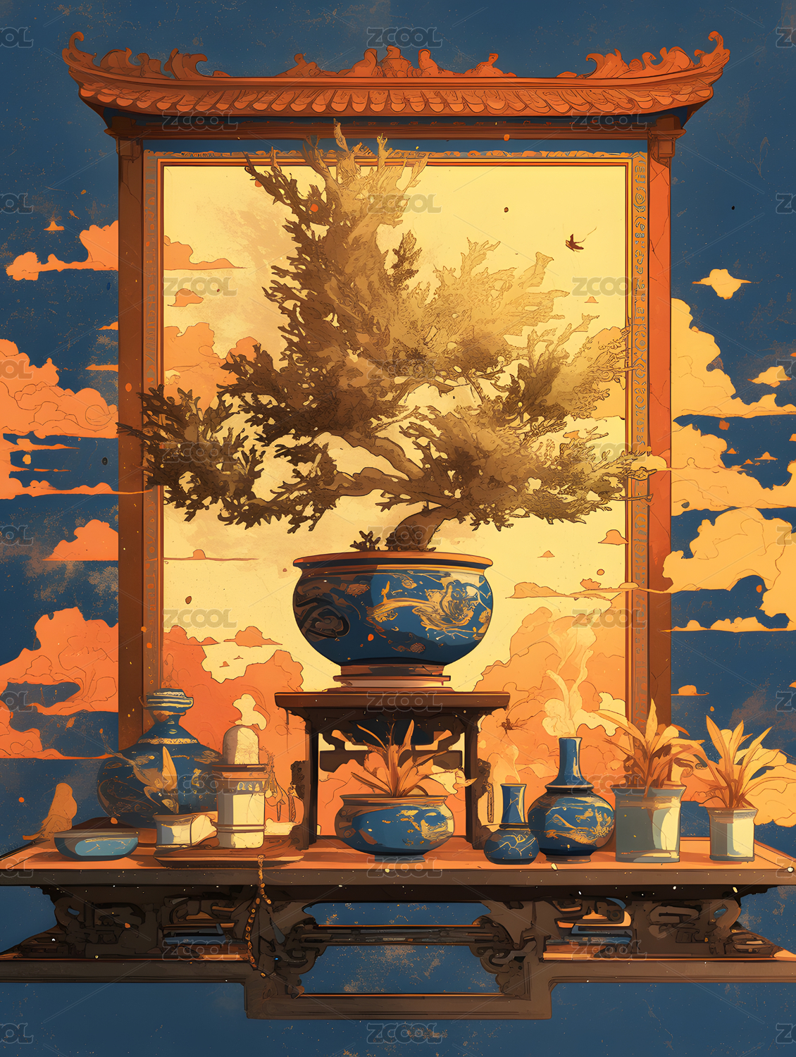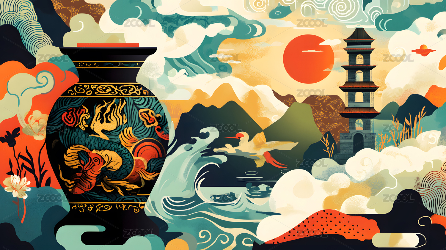 国潮,风格,插画,物品,AIGCFG,传统,文化,中国风,工笔画,潮流