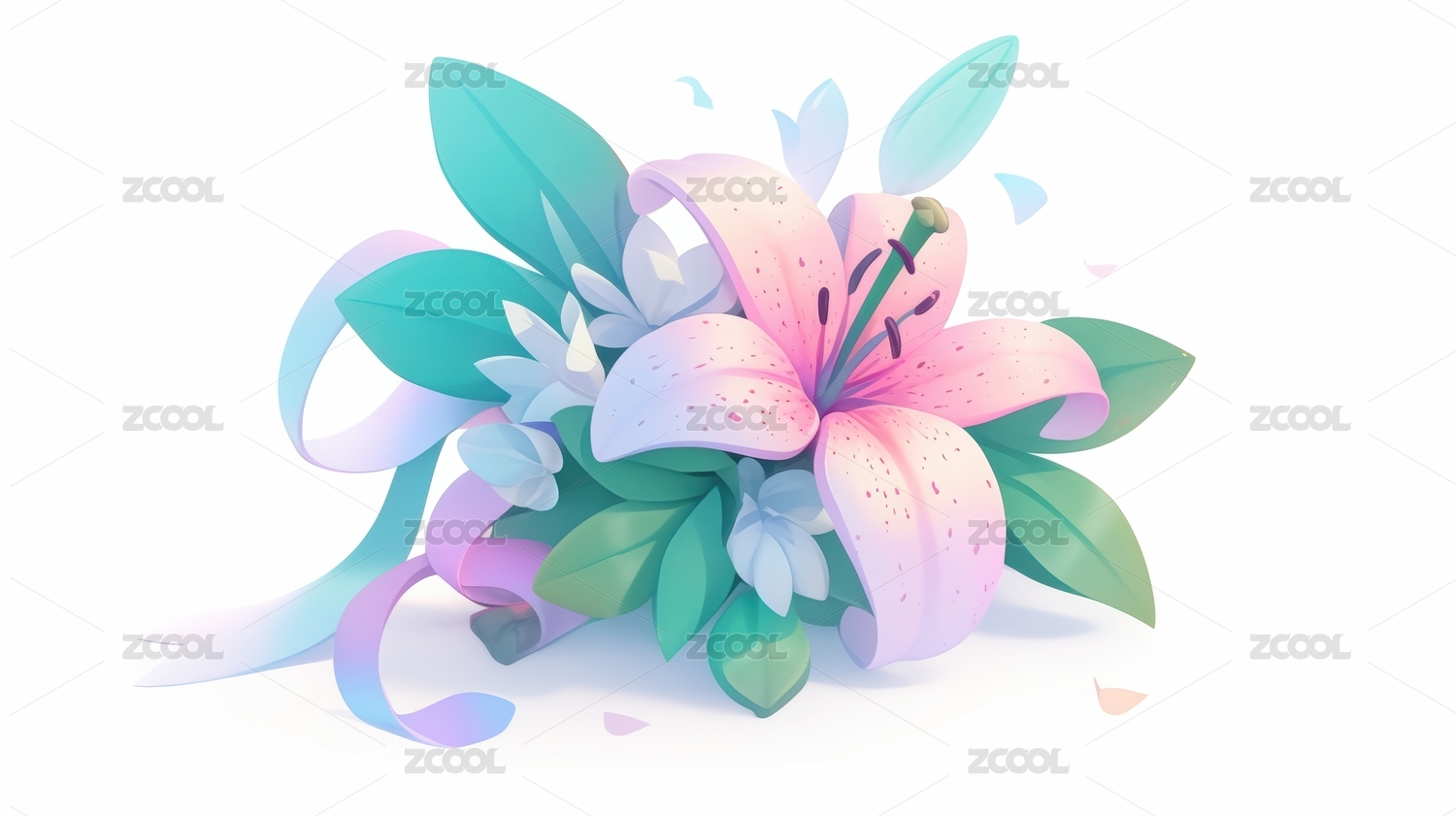 百合花朵元素水彩插画