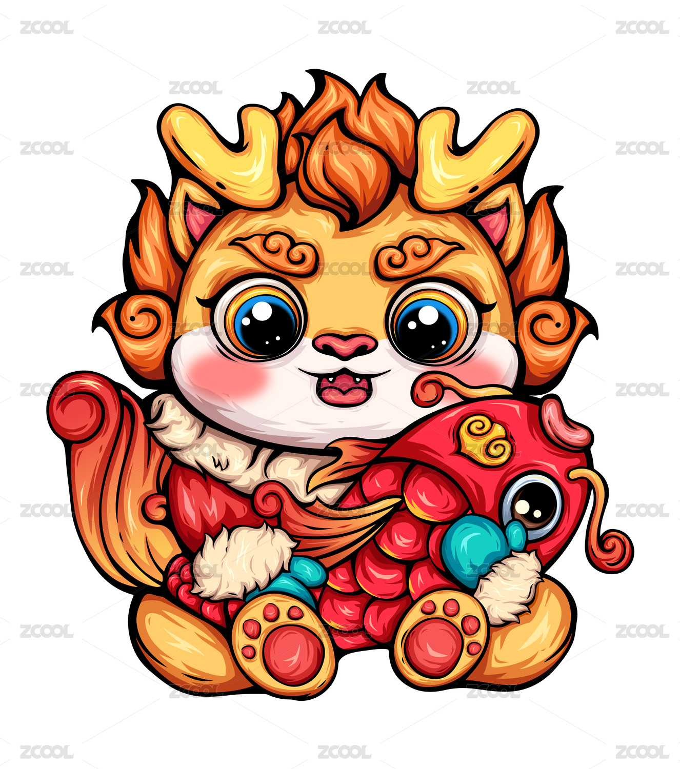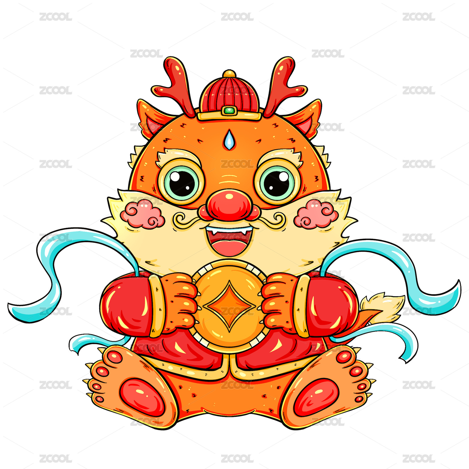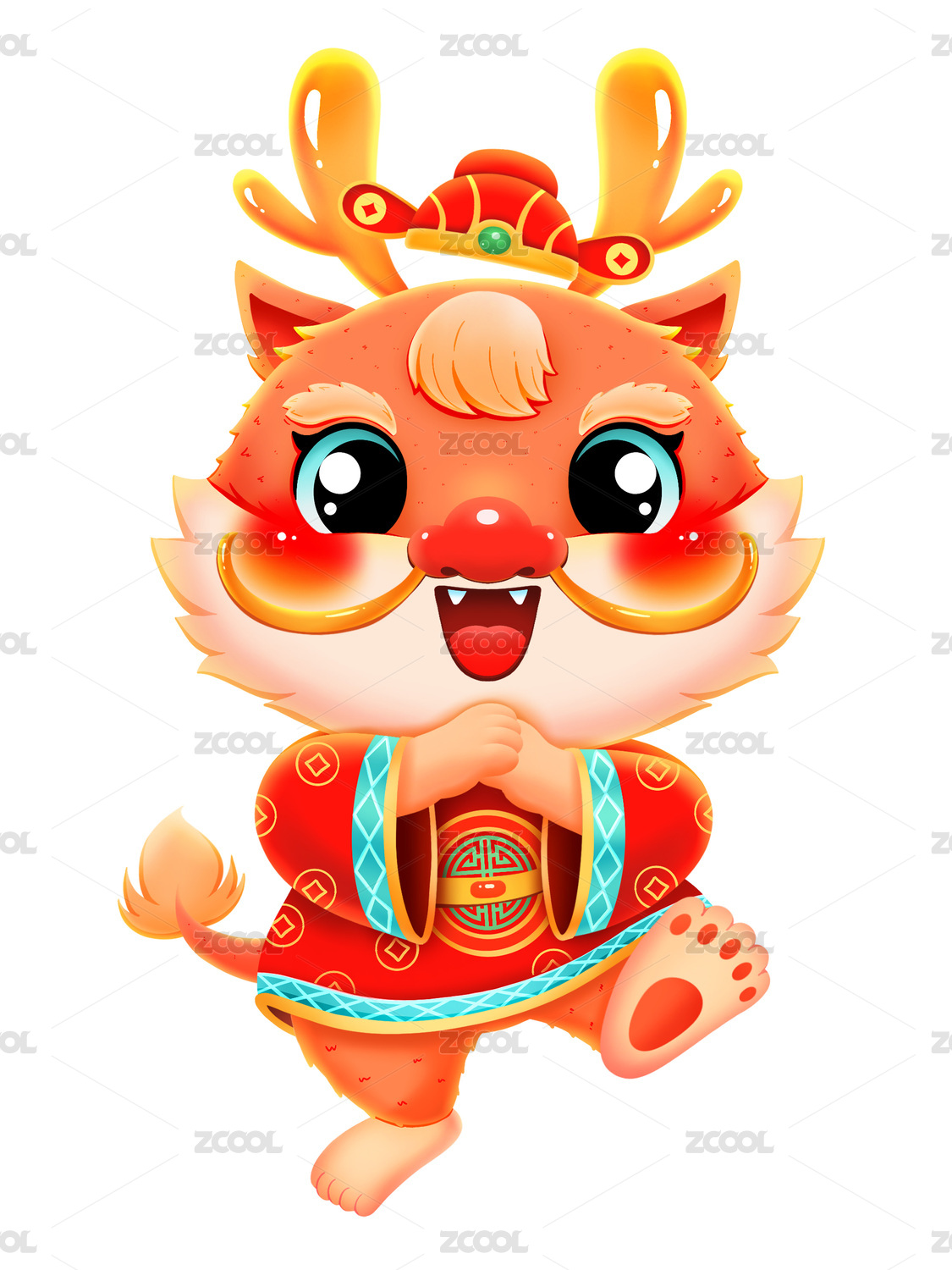 插画,动物,卡通,十二生肖,龙,汉服,拟人化,快乐,古装,新年