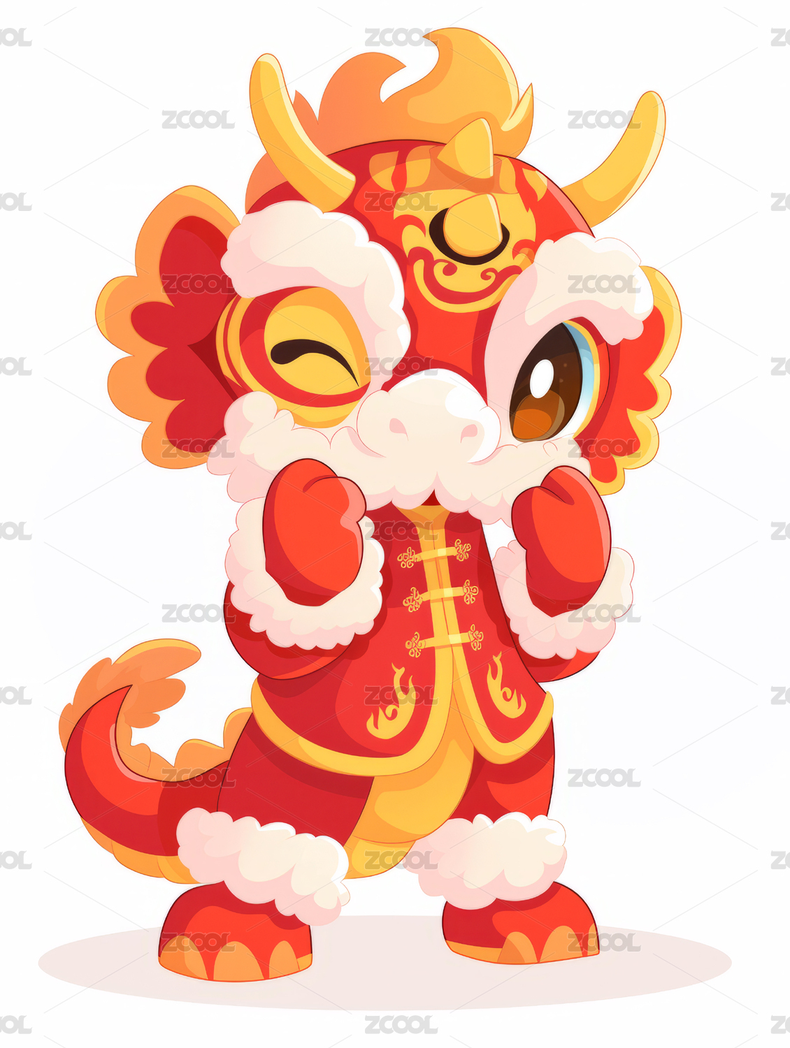 国潮新年春节龙红色龙头帽拜年福龙半身