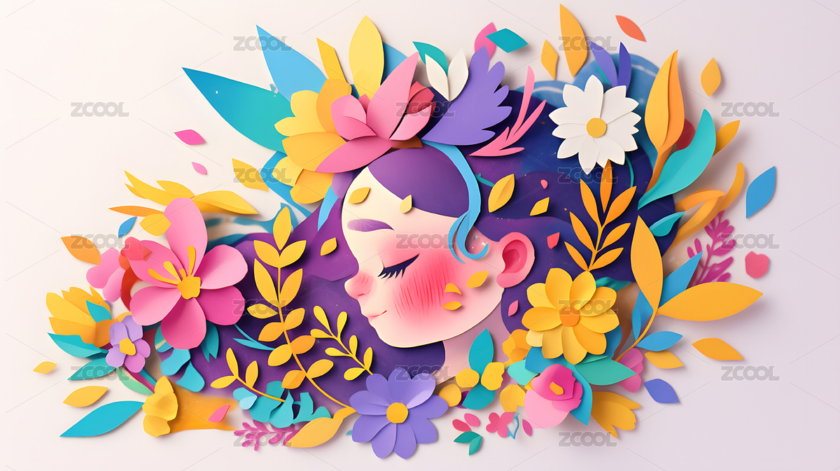 妇女节女性妇女剪纸风格插画,抽象的女性剪