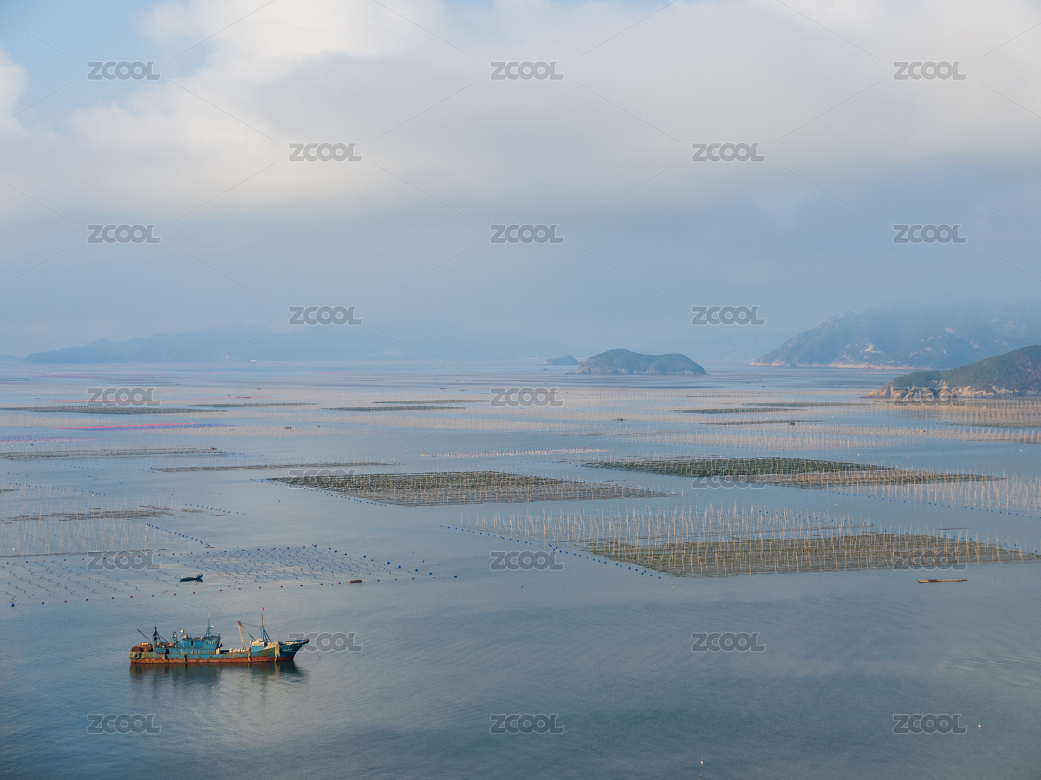 福建省漳州东山县鱼骨沙洲渔排与捕鱼网