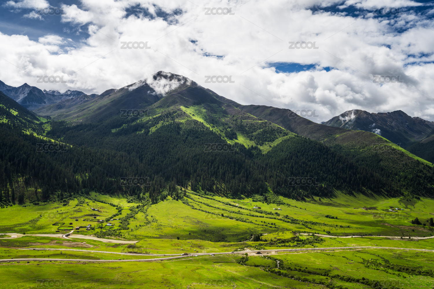 夏天,格聂,山,草原,风景,绿色,花海,草原风光,森林,旅游目的地
