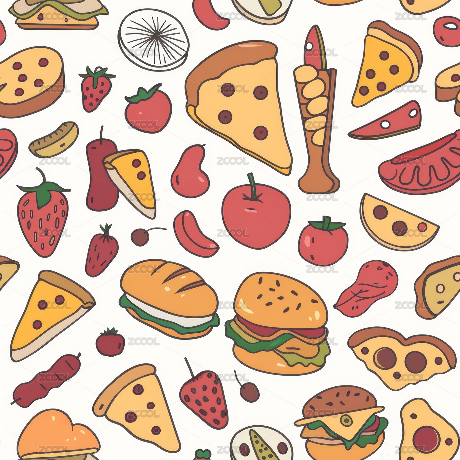 无缝拼接图案 端午节节日元素 粽子 食材手绘素材