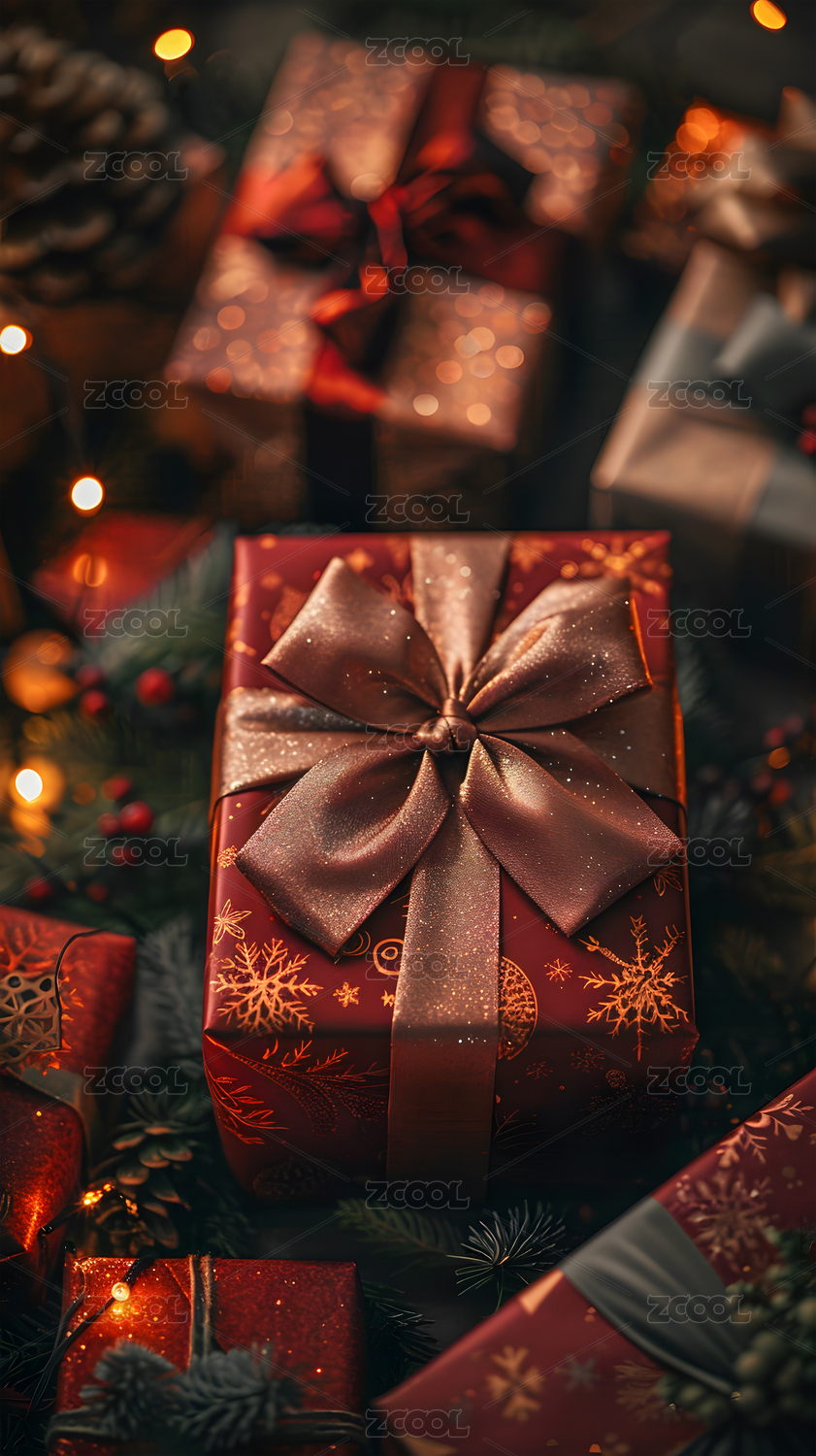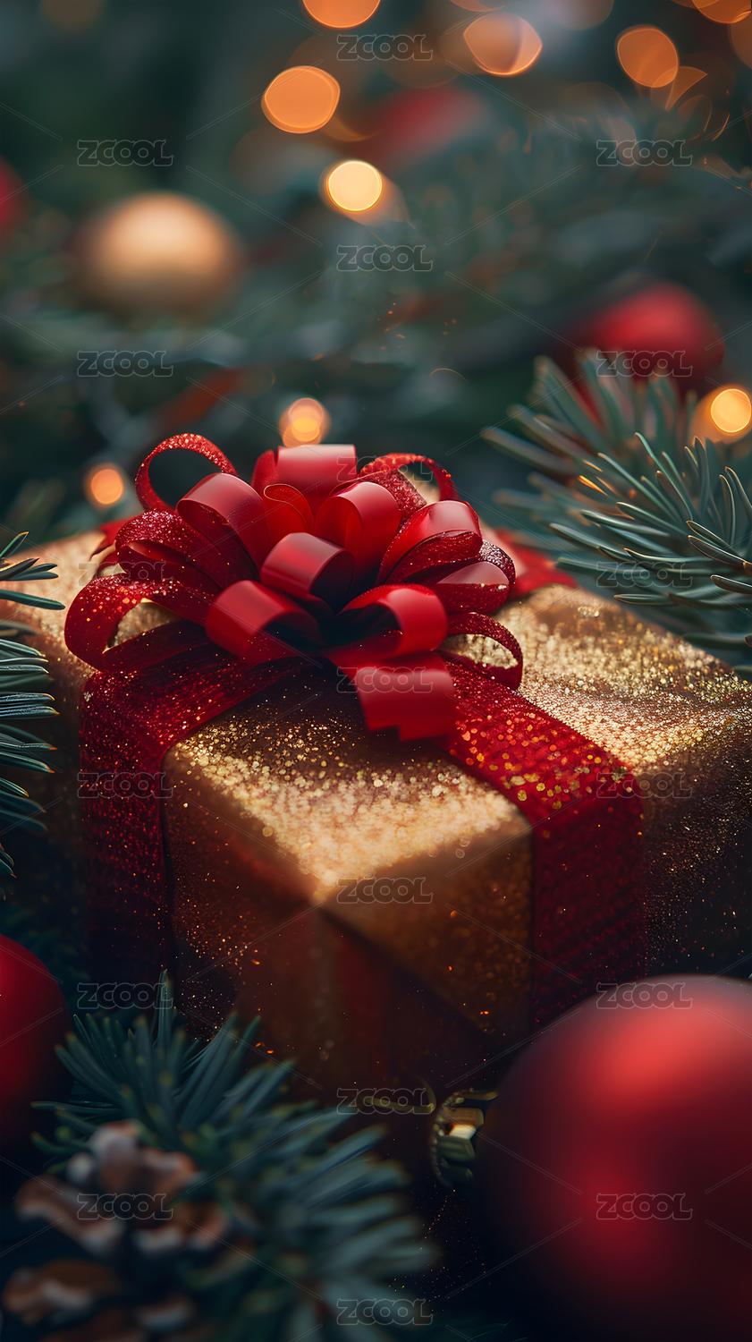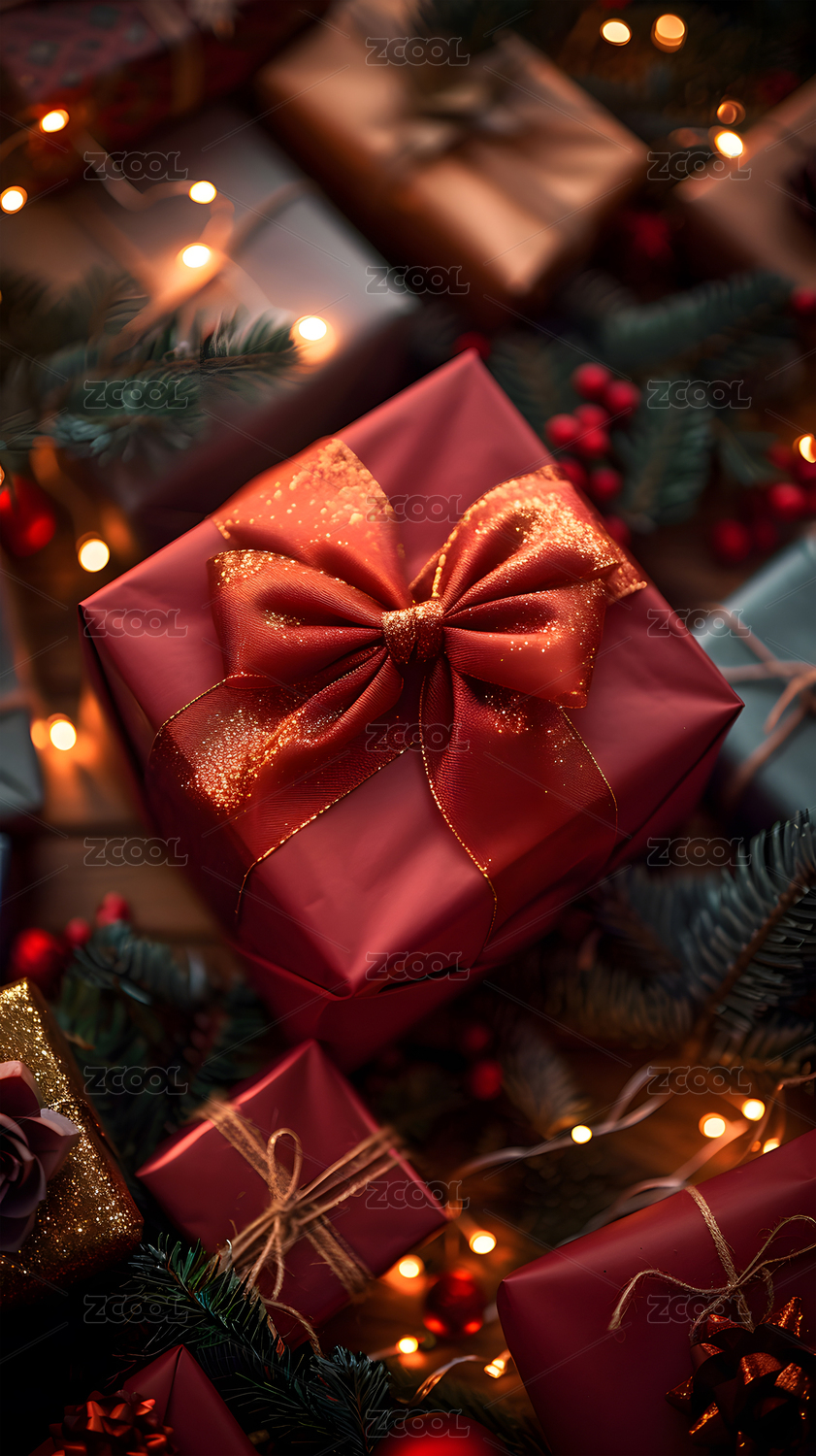 圣诞节,圣诞,圣诞树,彩灯,礼物盒,冬青叶,红果,雪花,节日,温馨