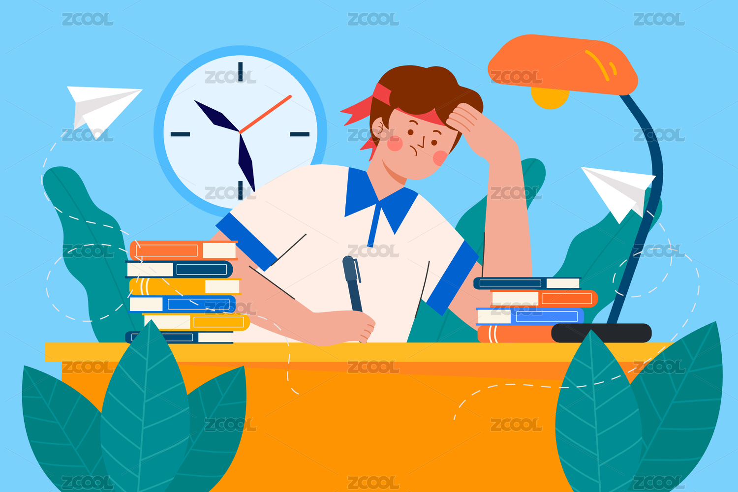 学生高考复习上课学习写作业插画