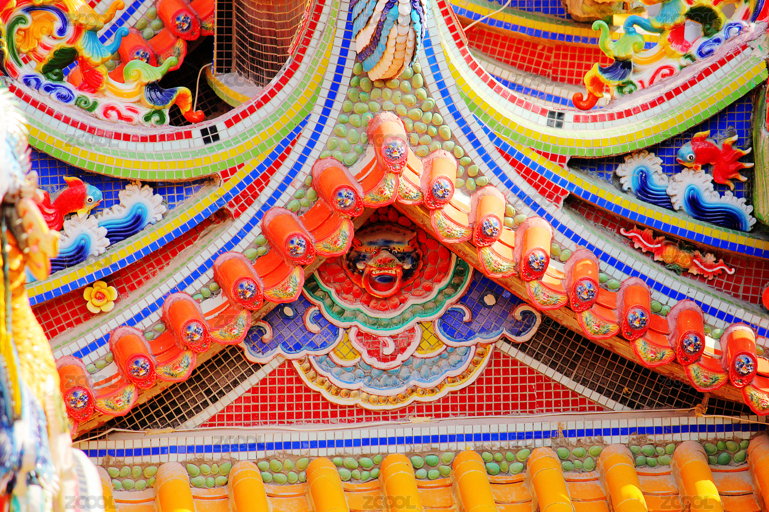 中国福建厦门市龙源宫庙屋顶精美的飞檐