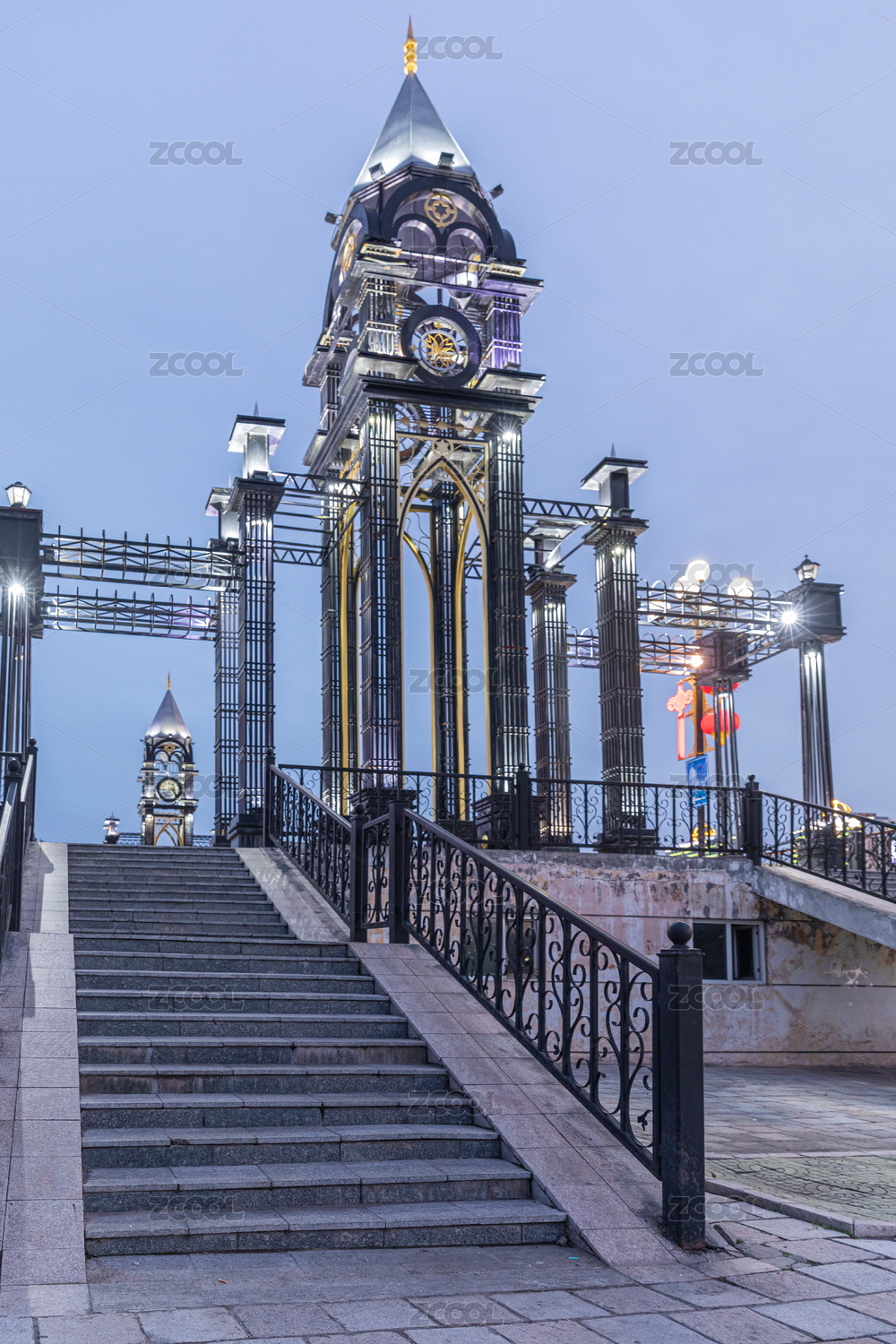 中国内蒙古海拉尔伊敏河民族公园钟楼景观
