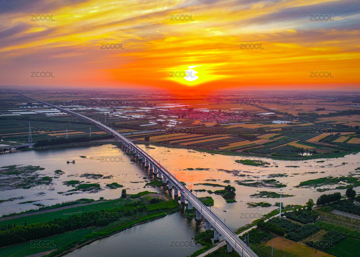 夕阳下的跨江大桥:厂通路潮白河大桥