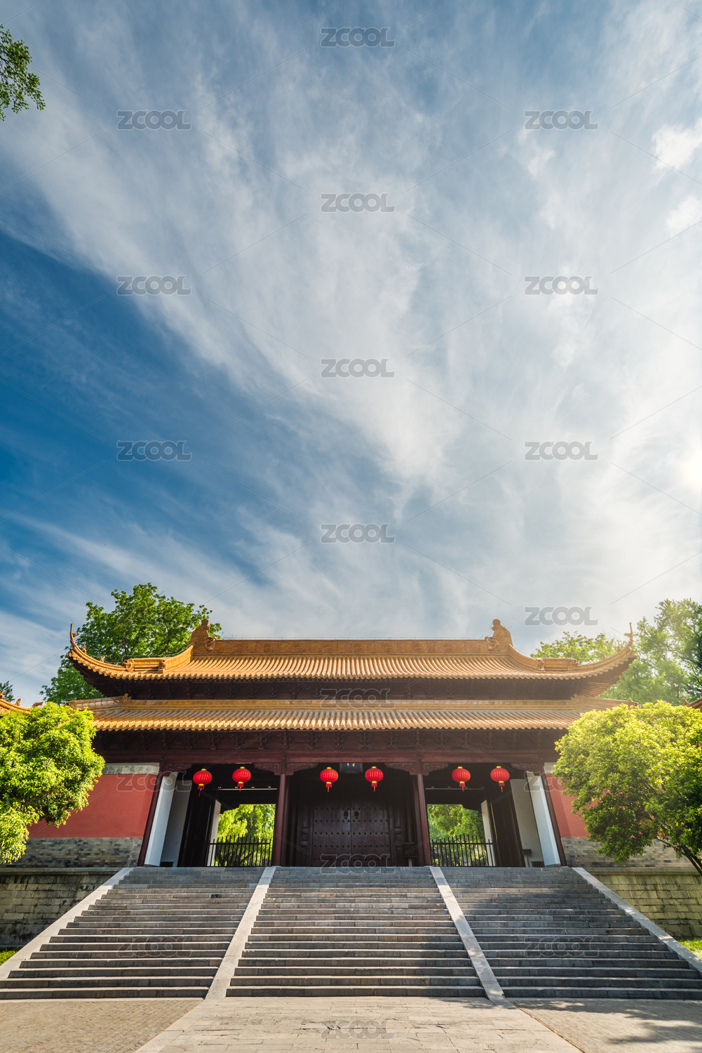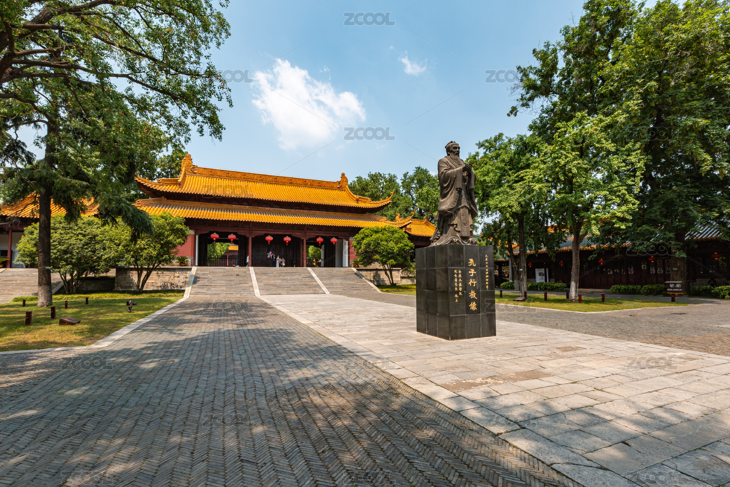 中国江苏南京朝天宫的孔子雕像和大成门古建