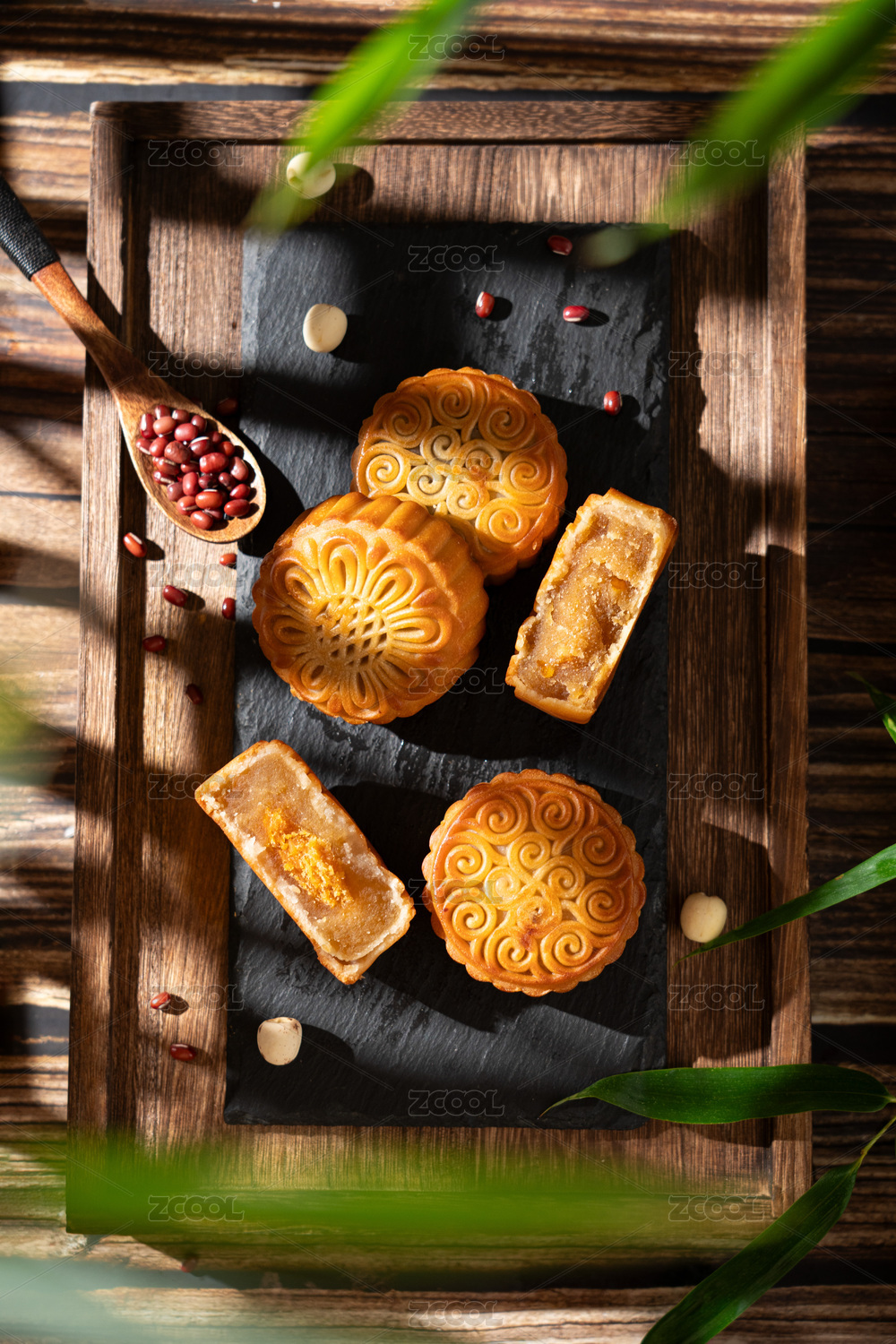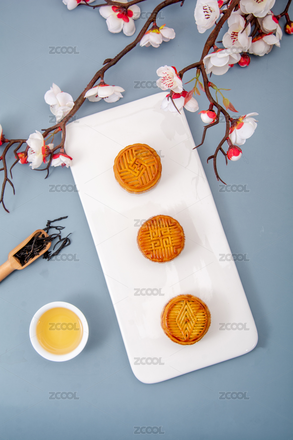 水泥纹理的灰色背景中 摆放着中秋节月饼