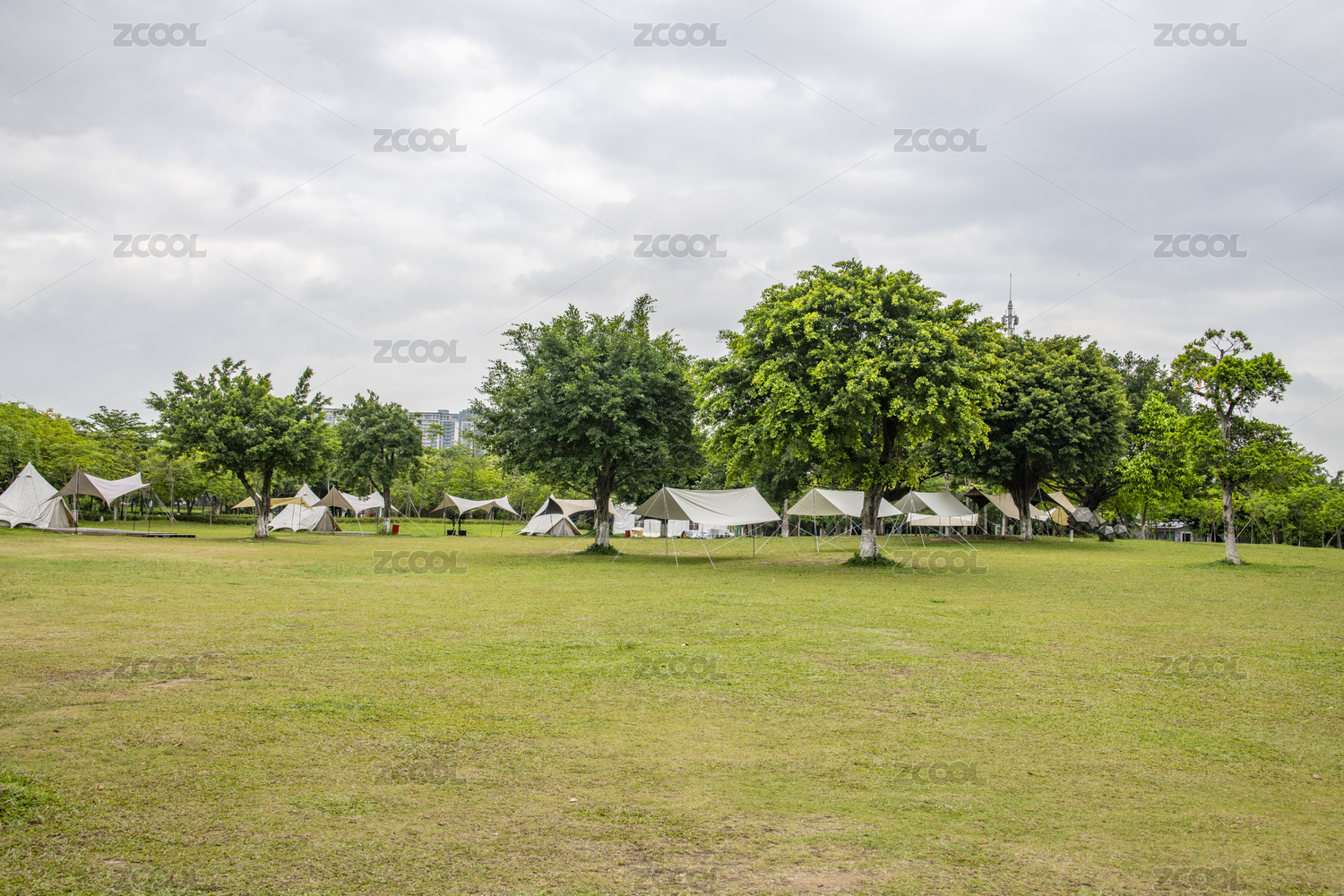 公园露营草地上的帐篷