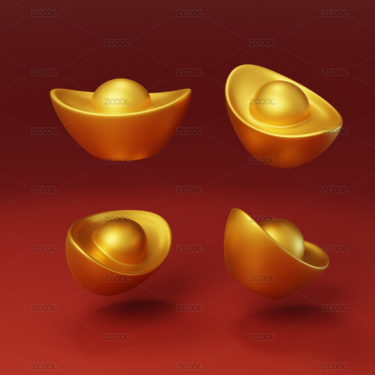 新年国风喜庆招财聚宝盆金币金元宝3D