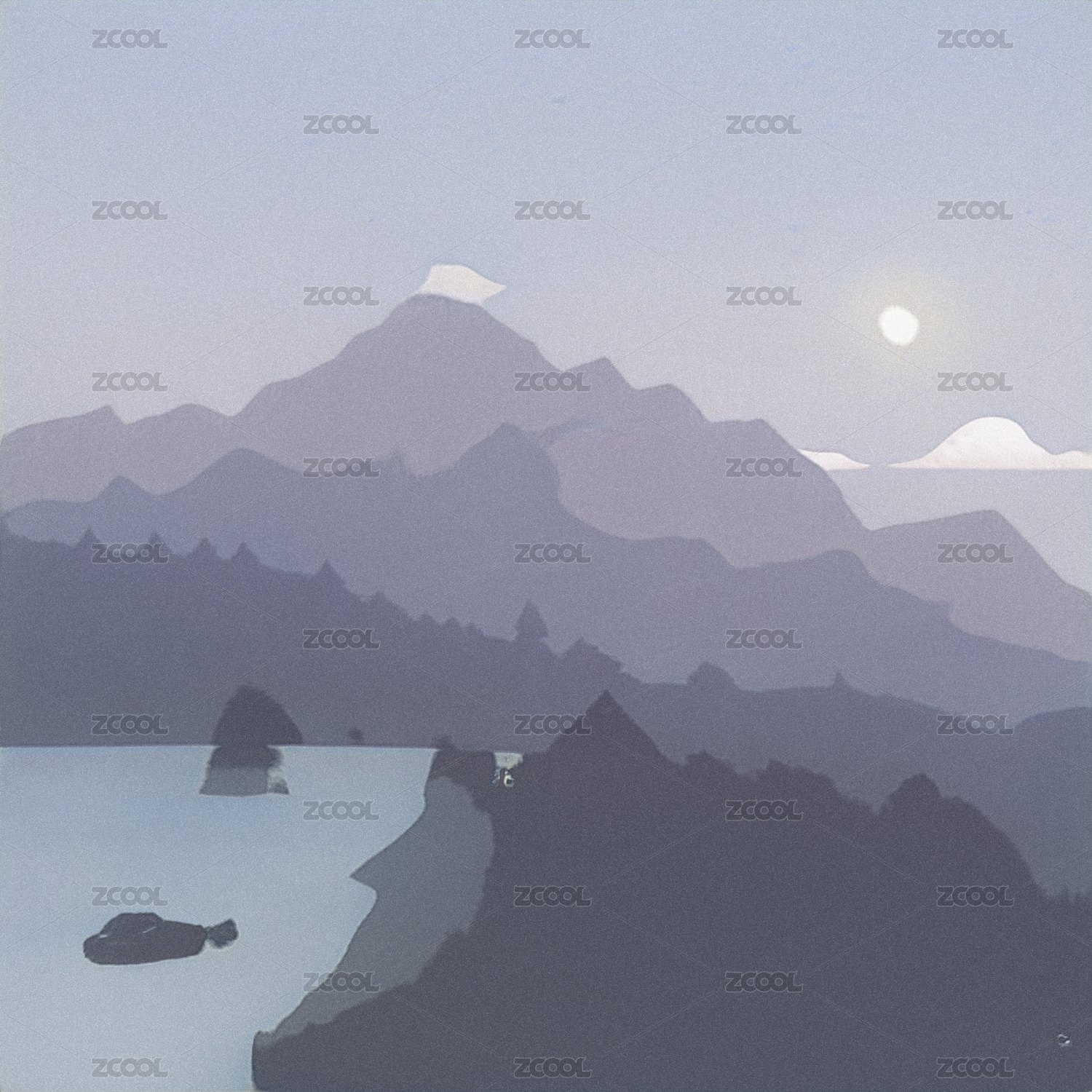 插画,风光,自然,天空,山脉,河流,河,大海,海洋,山丘