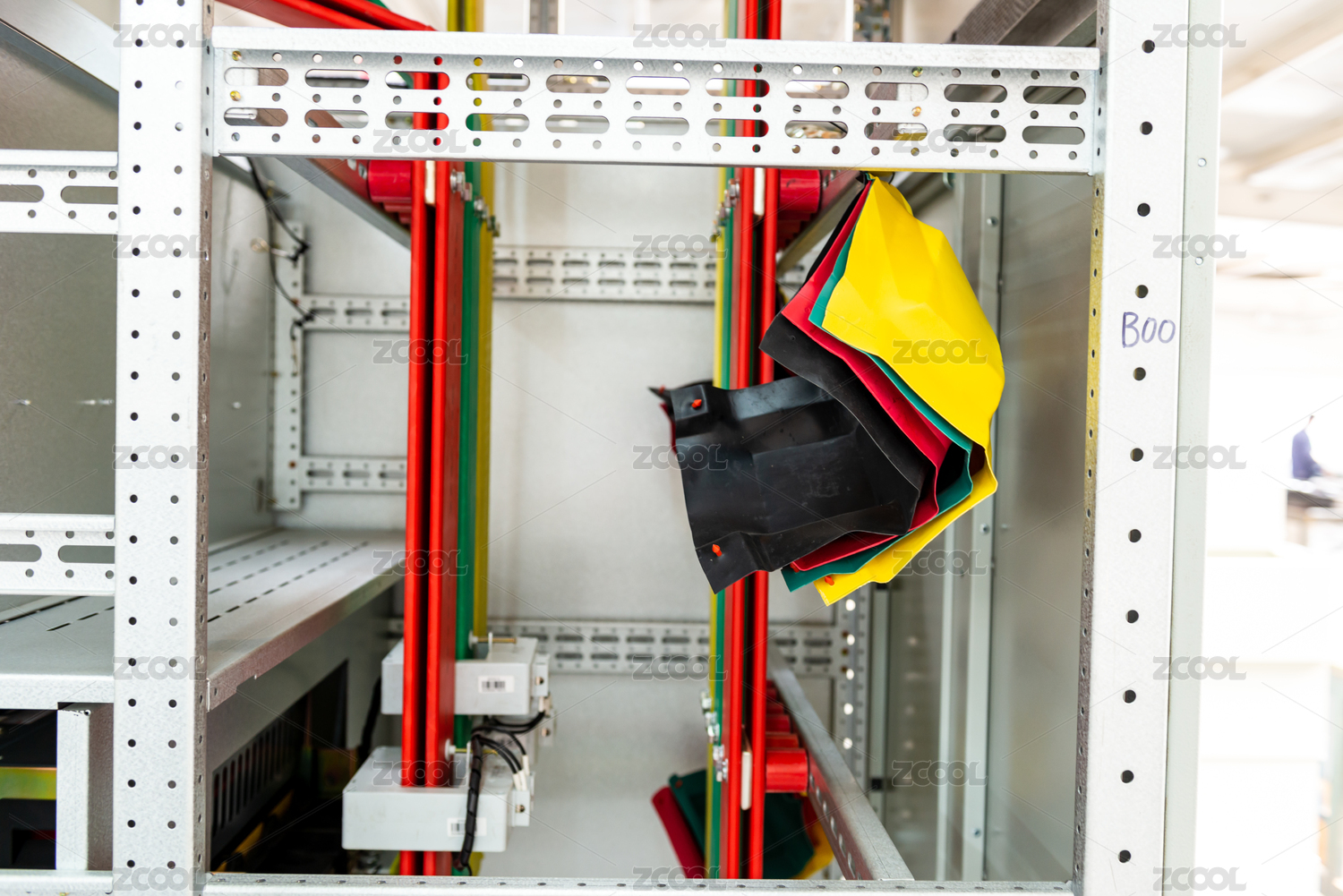 母线,铜排,白手套,戴,双手,接线,钣金,开关柜,高压,配电柜