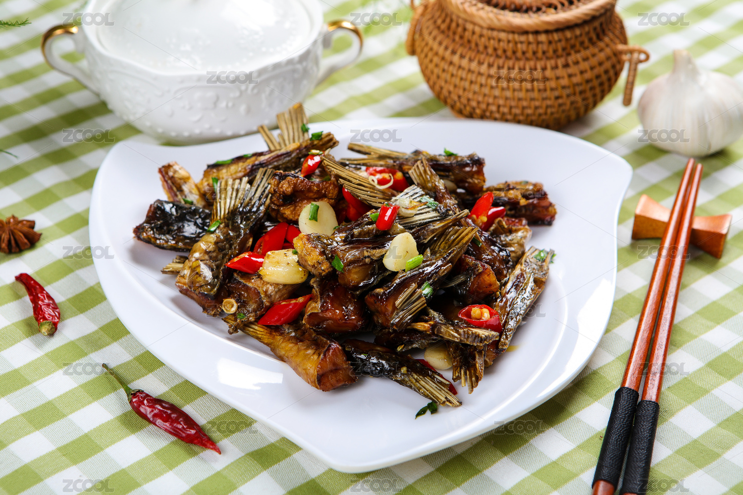 菜肴美食辣炒腊鱼干