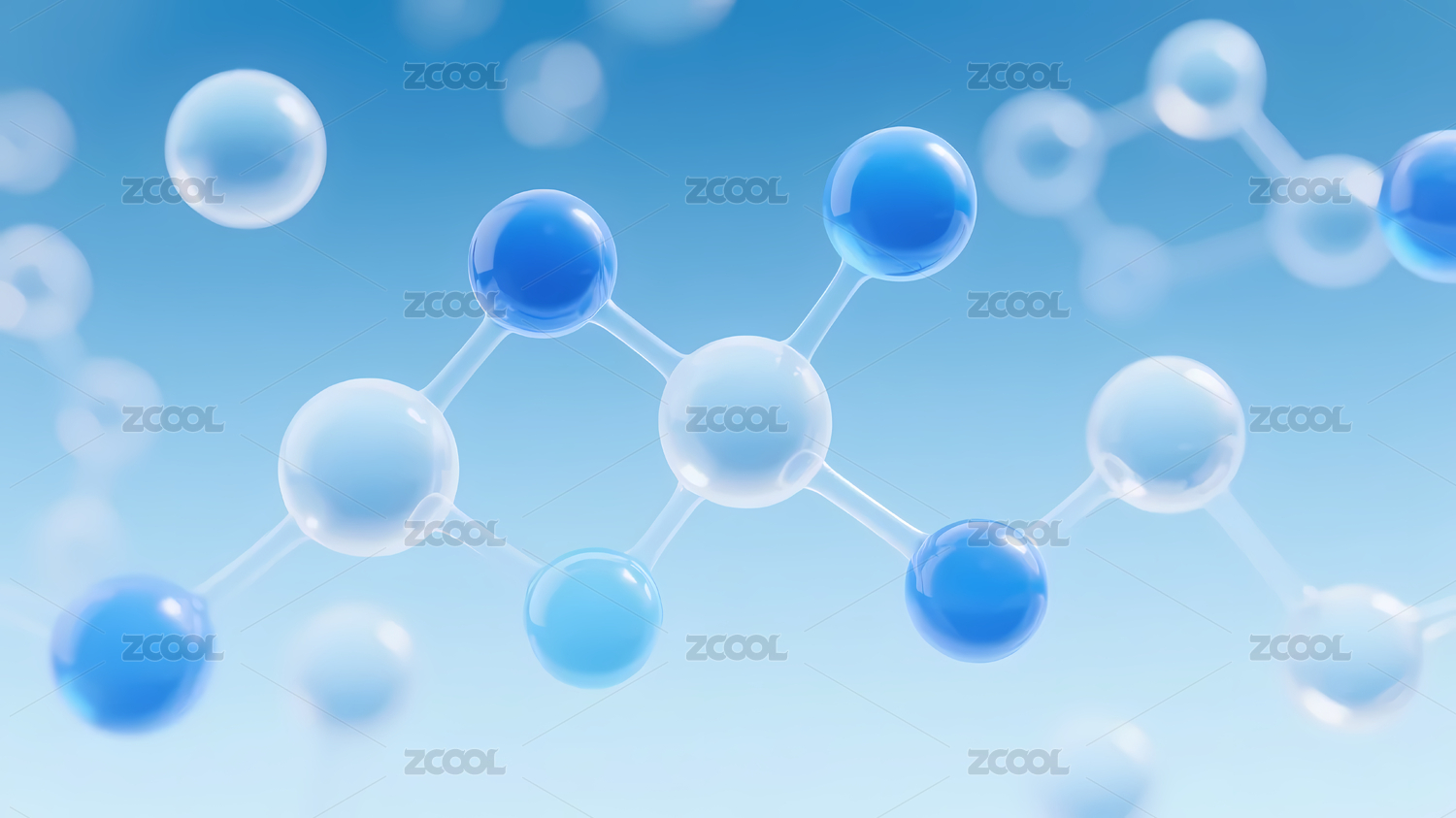 蓝色的干净的水滴玻璃球组成的甲烷CH4分子