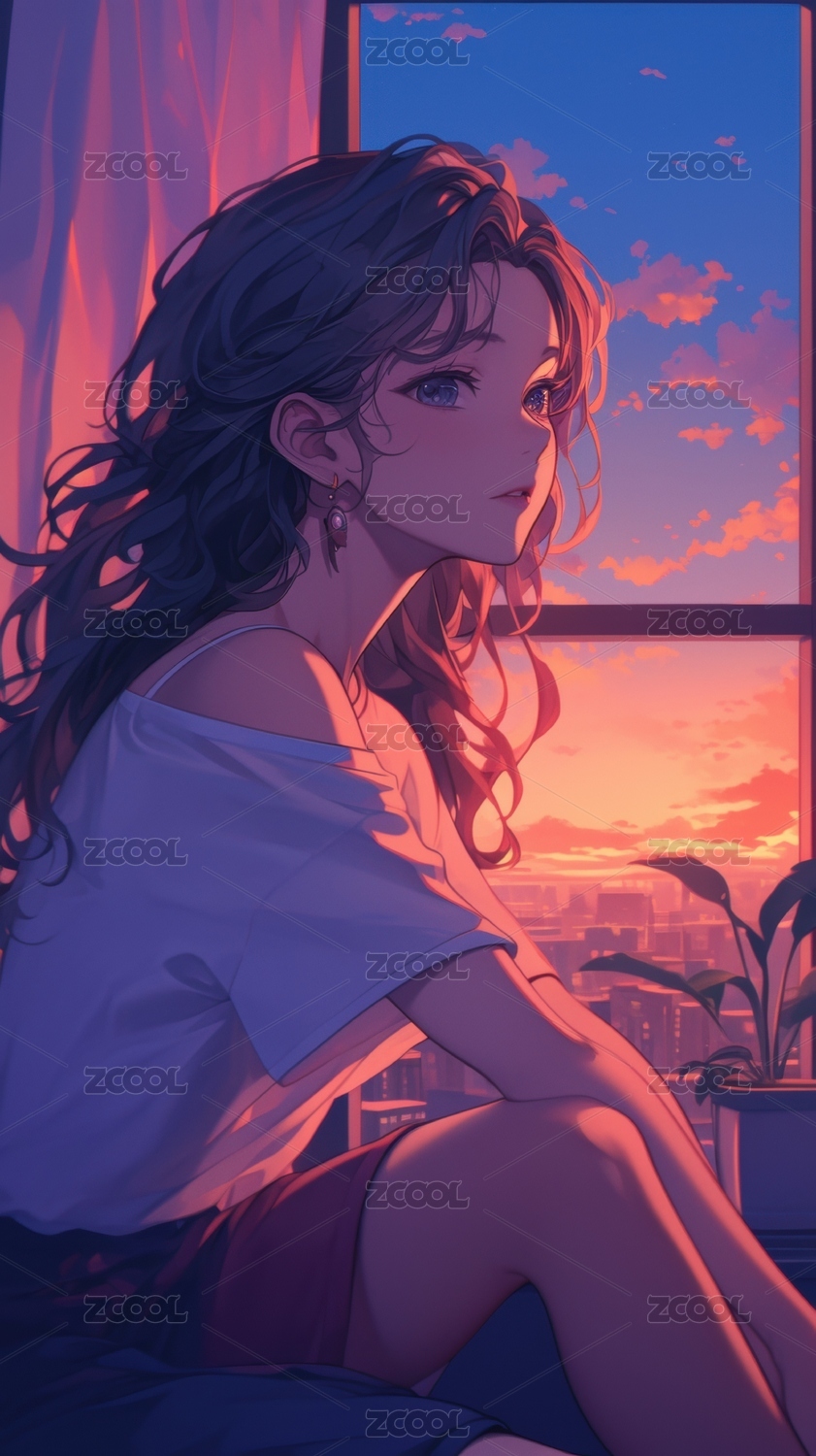 窗边少女凝望夕阳