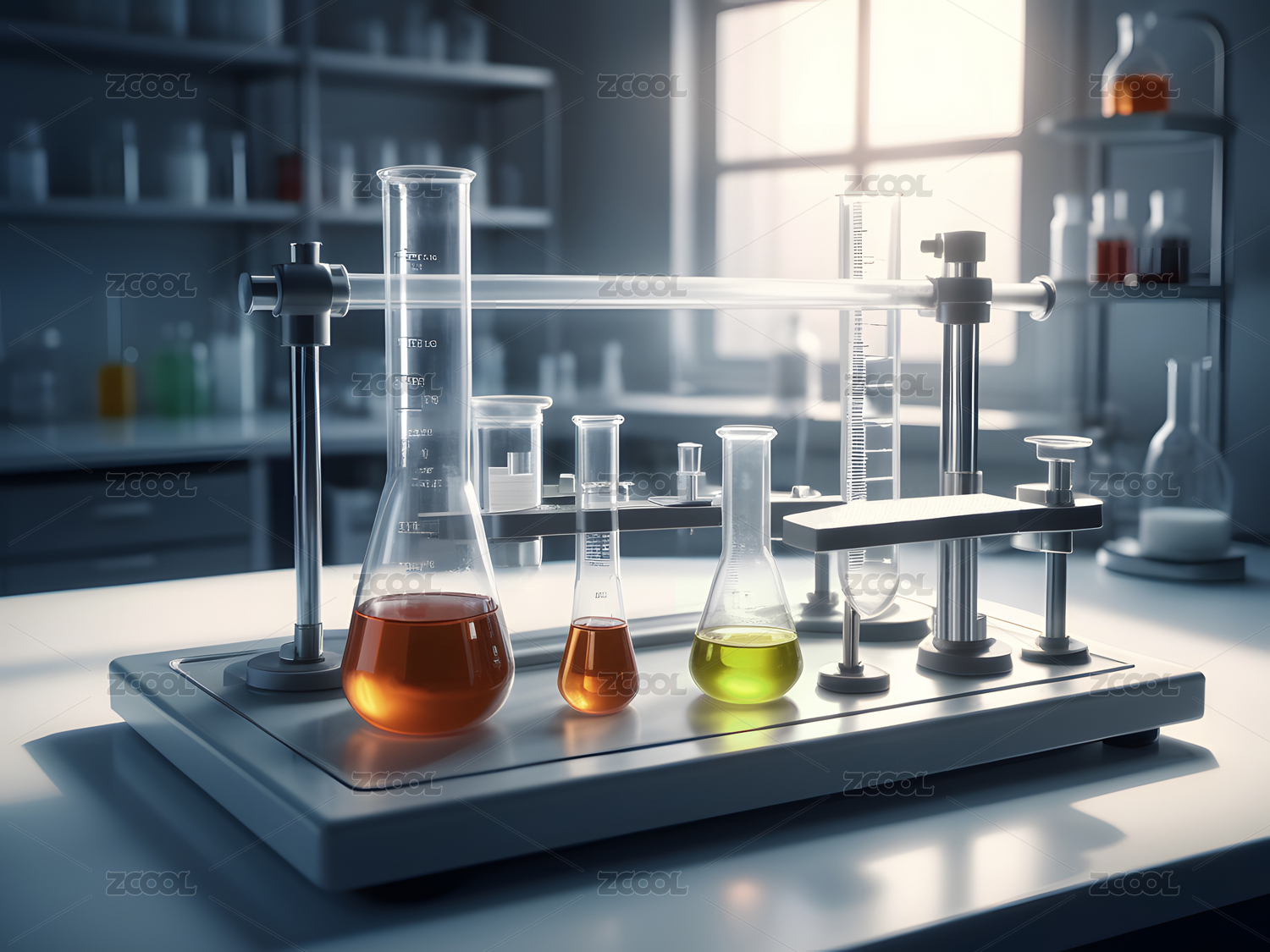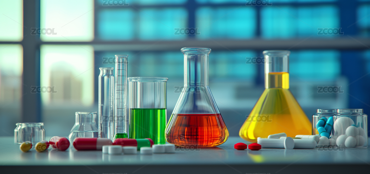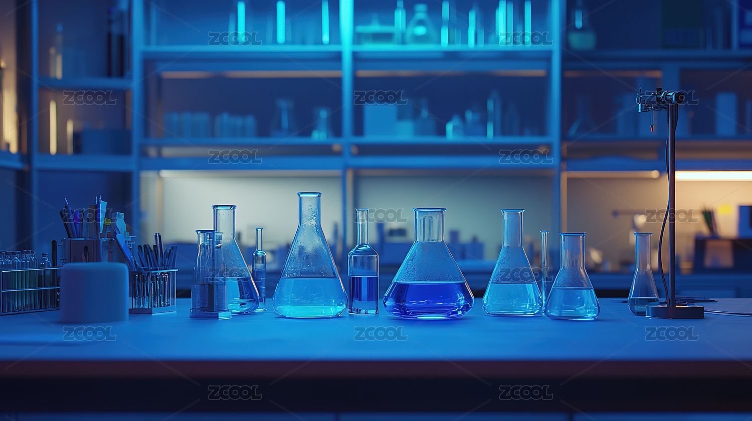 实验室 锥形瓶 红色液体 蓝色液体 黄色