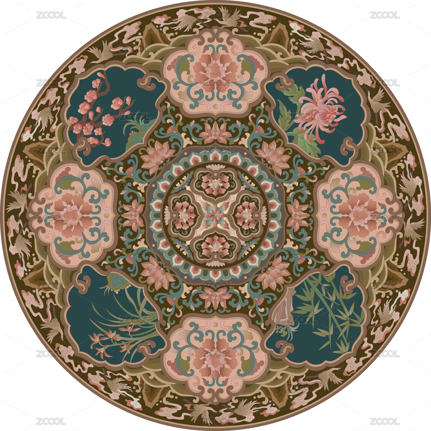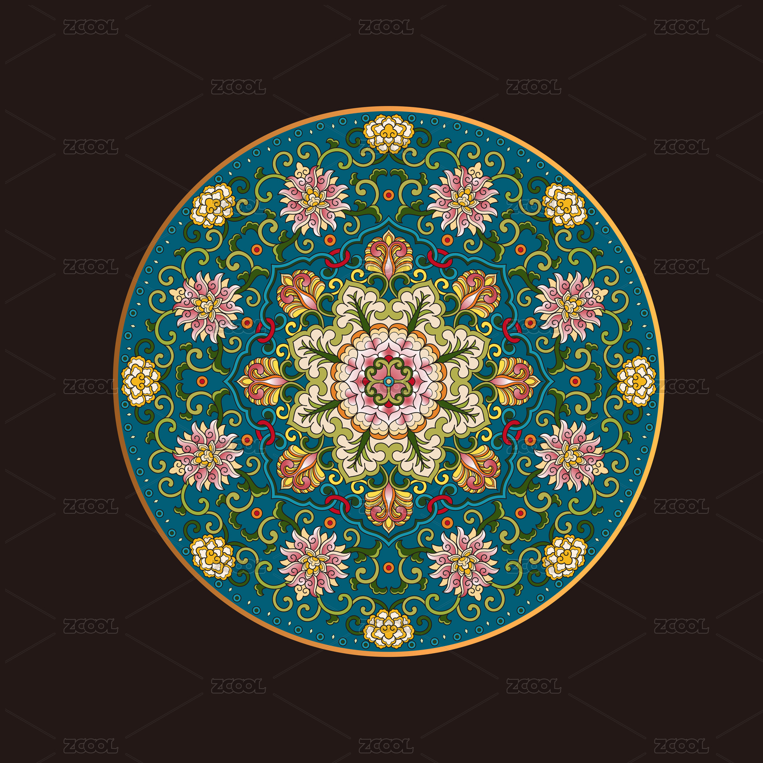 中国传统的蝙蝠纹装饰图案,圆形古典花纹背景