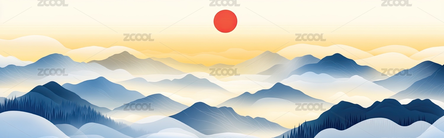 太阳下的山水图背景