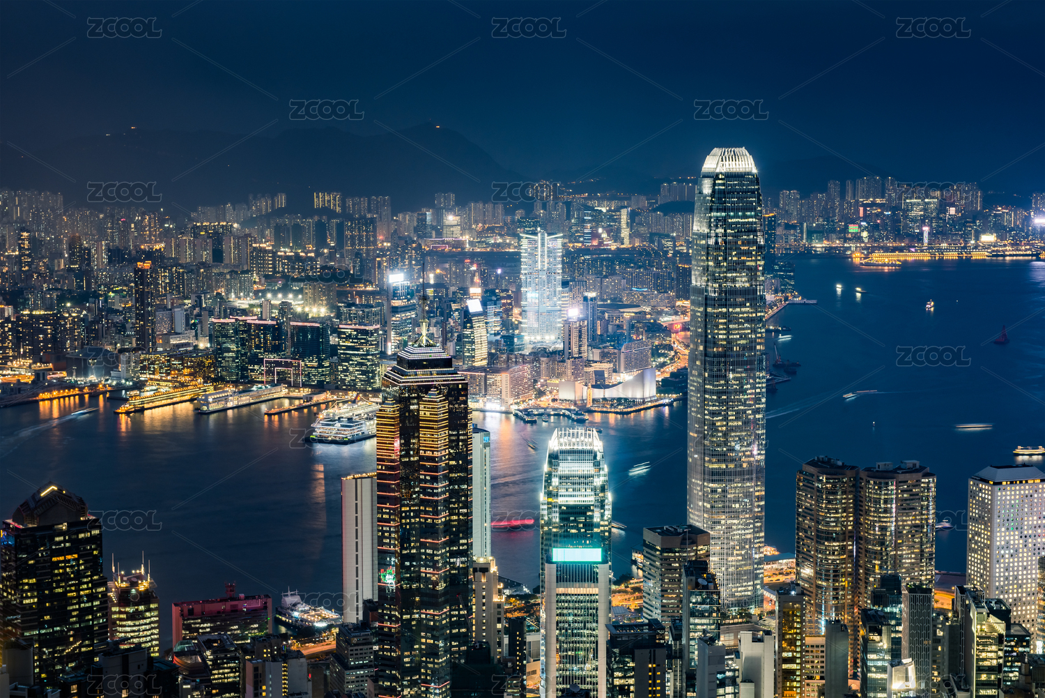 香港太平山俯瞰维多利亚港城市夜景