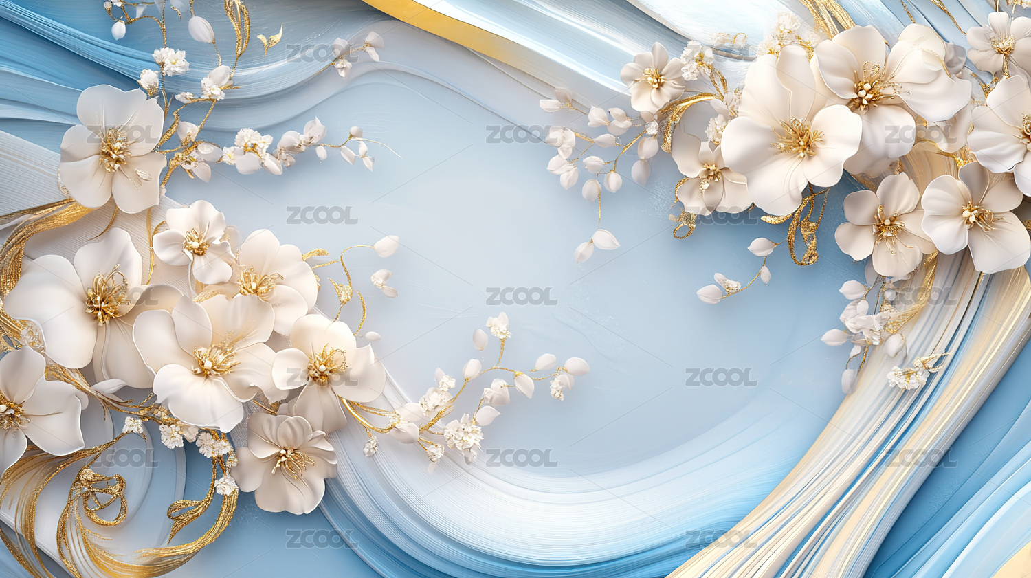 金色与白色交织的花卉艺术图案