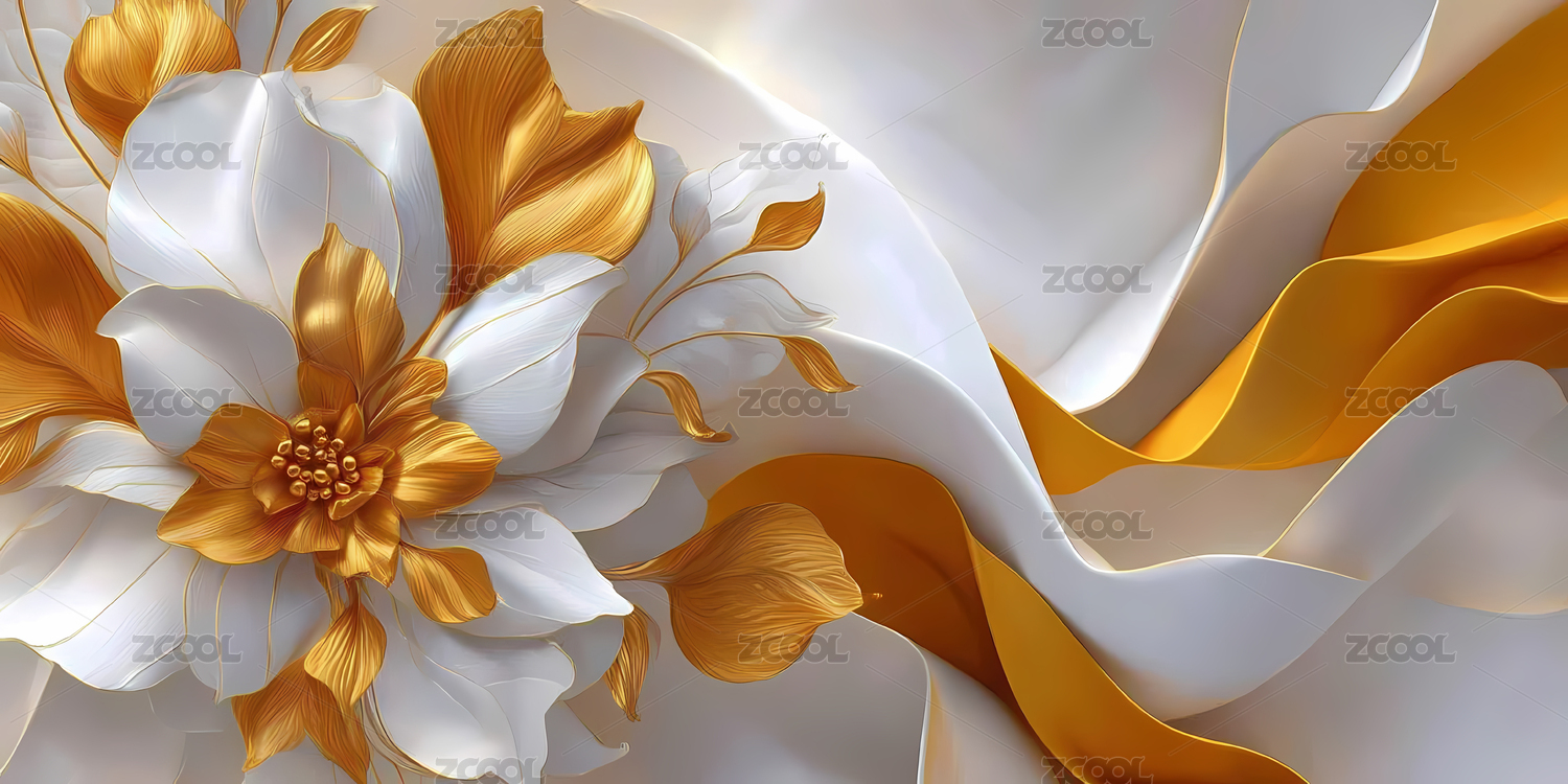 金色与白色交织的抽象花卉艺术