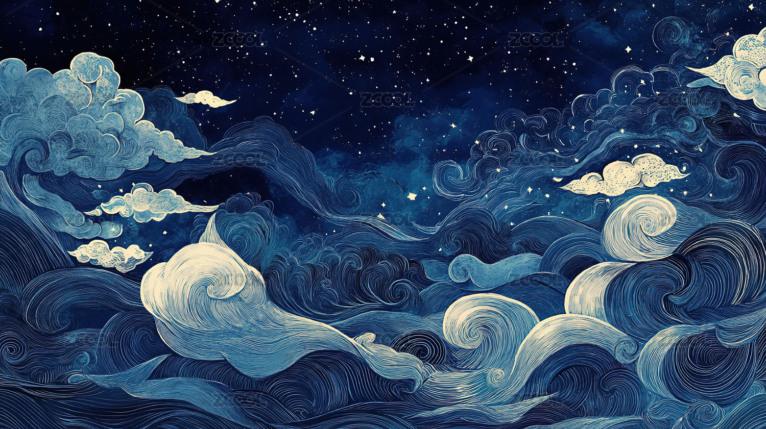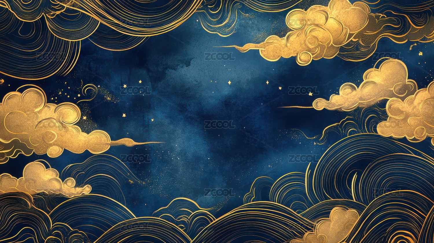 传统中国云彩纹理插画海报背景
