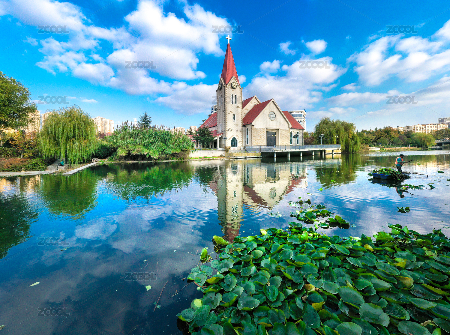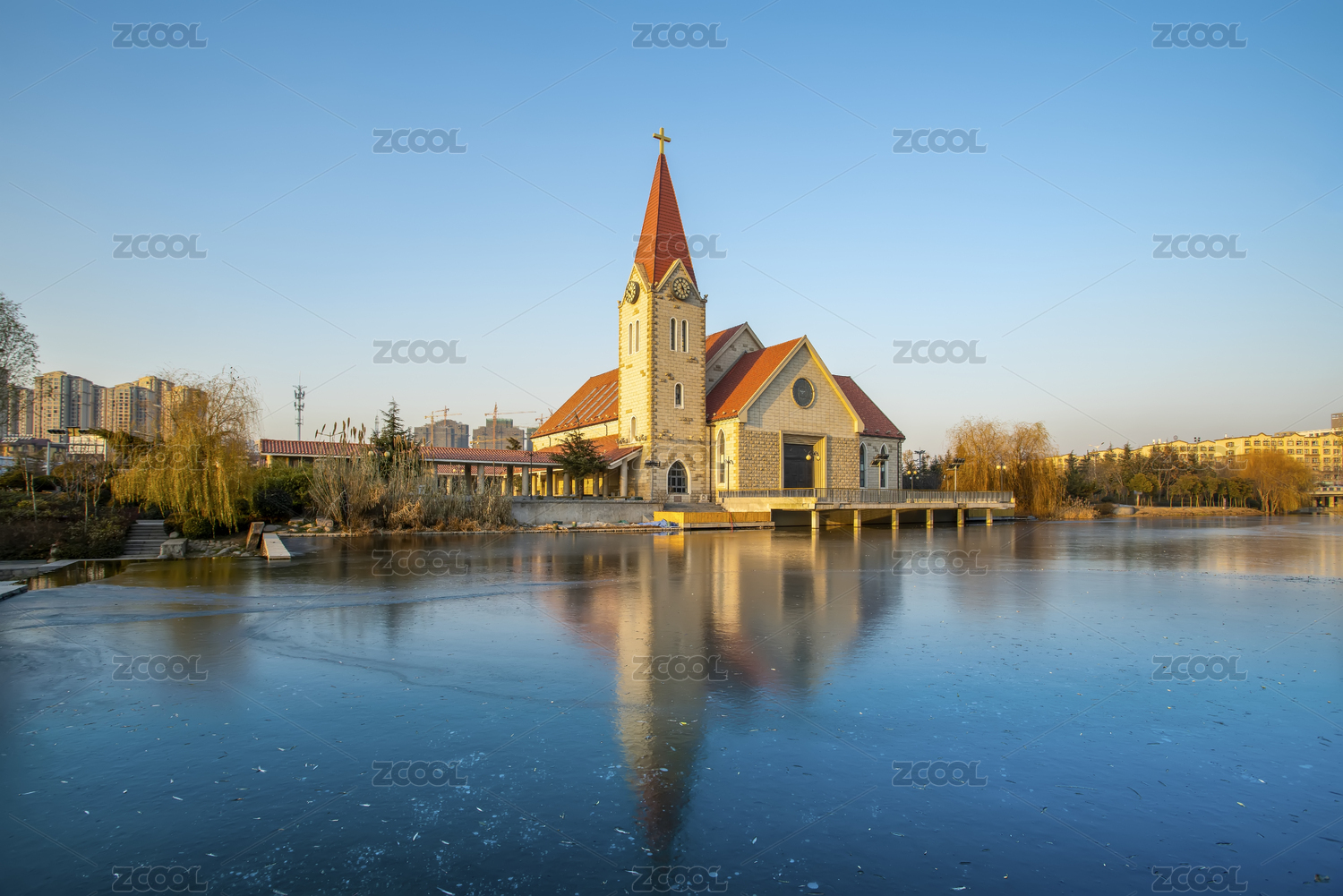 教堂,青岛,塔,中国,建筑,旅游,广场,宗教,山东,湖