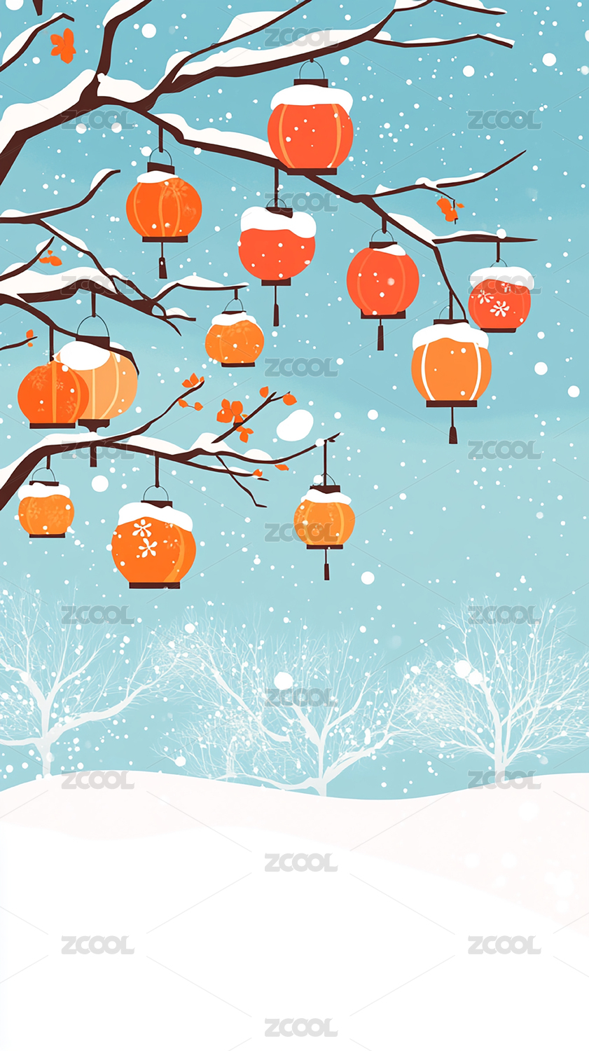 红灯笼,雪景,冬天,新年,春节,中国风,祥和,喜庆,冰雪,灯笼