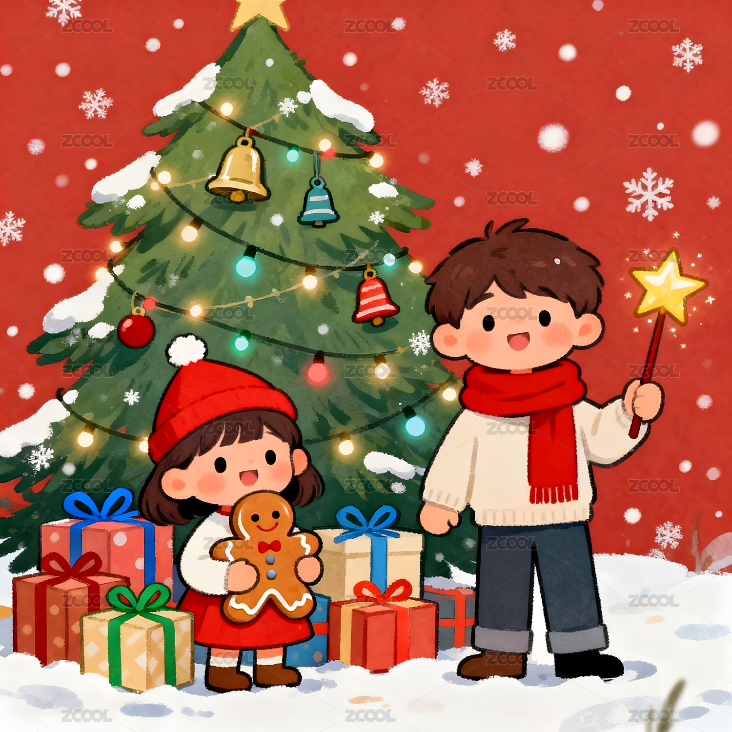 圣诞节,节日,儿插,情侣,礼物,圣诞树,姜饼,猫咪,礼盒,新年