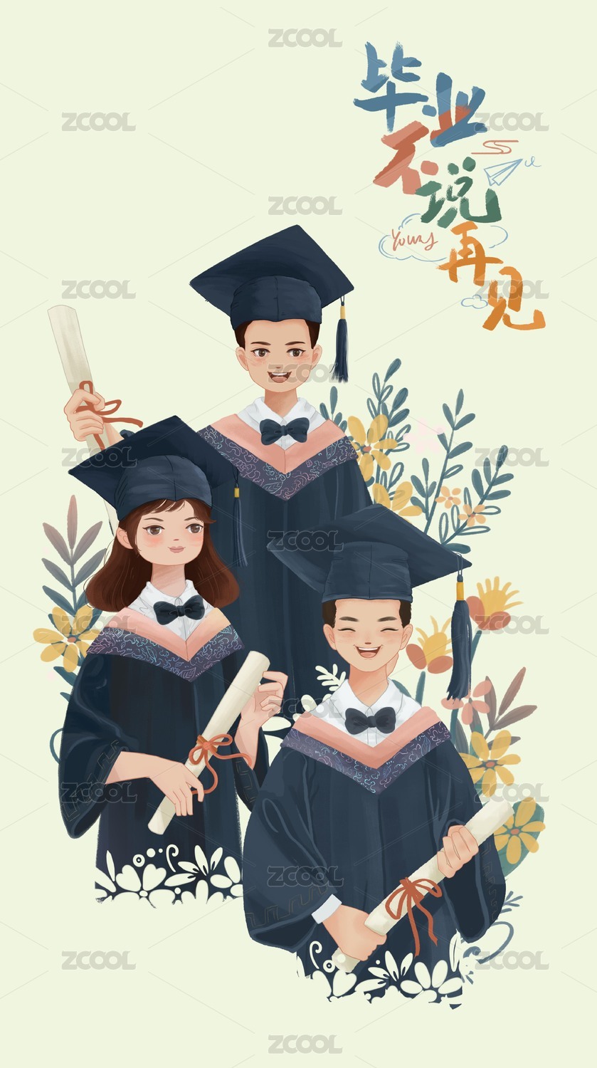 学生,毕业,学士服,女生,男生,人物,插画,花卉