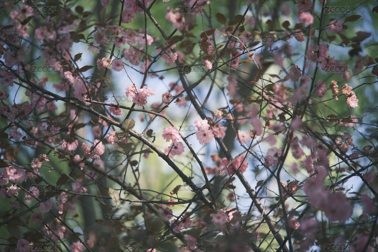 仰拍蓝天下盛开的粉色樱花,中国福建永福