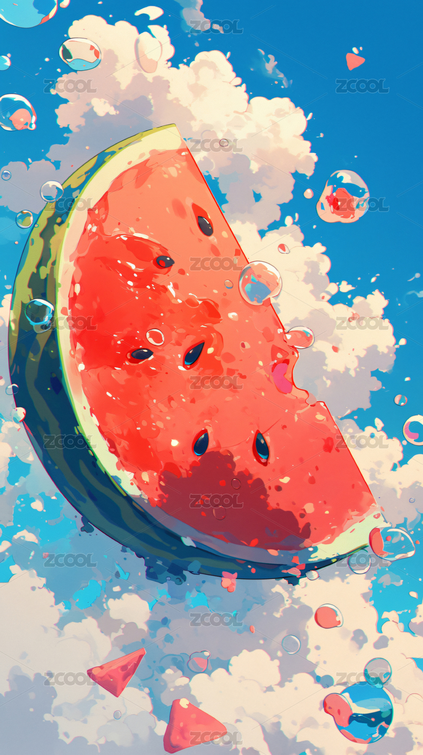 清爽一夏,可口美味西瓜背景插图
