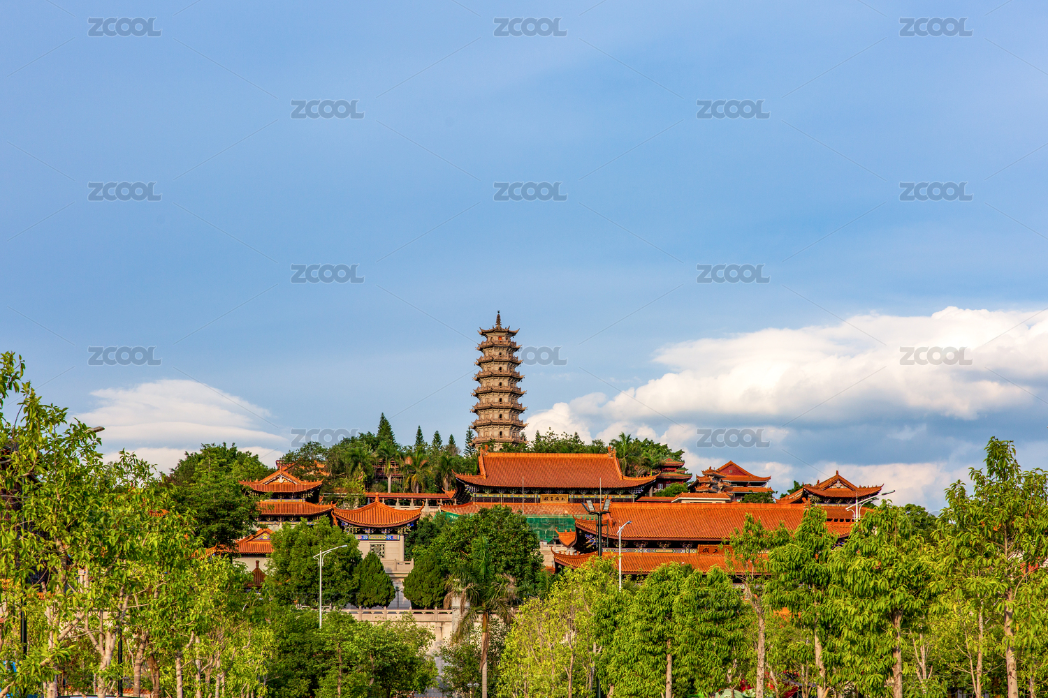 晴朗的午后,眺望扬州大明寺栖灵塔风景