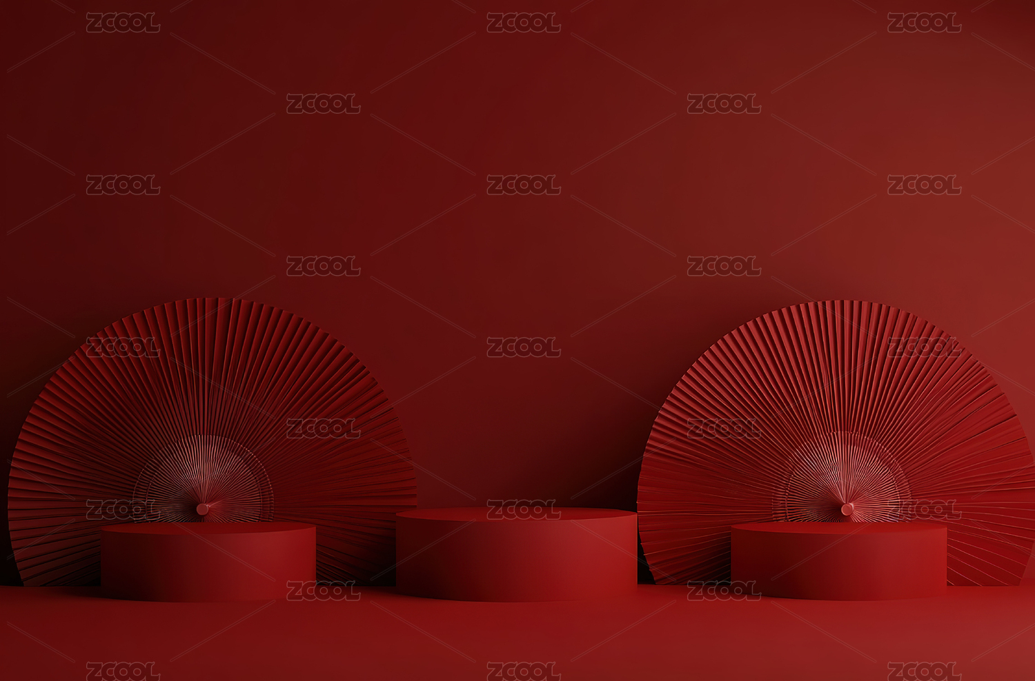 红色扇子环绕的展台