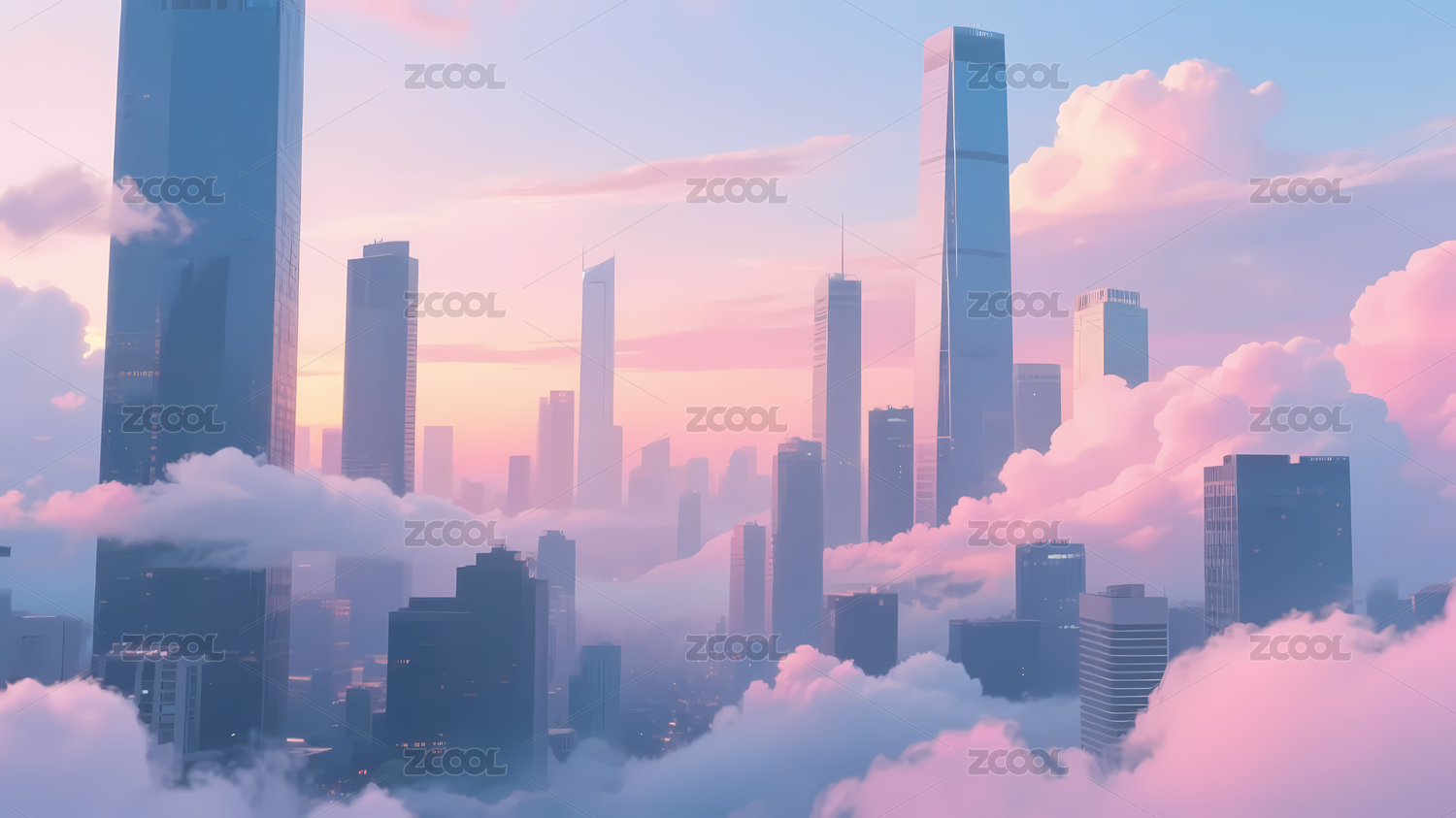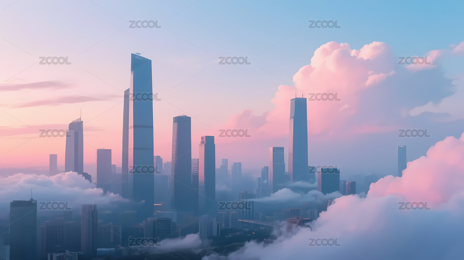 梦幻粉蓝城市景象