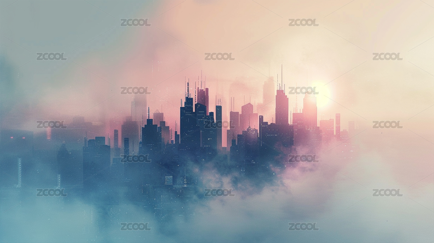 雾中城市剪影