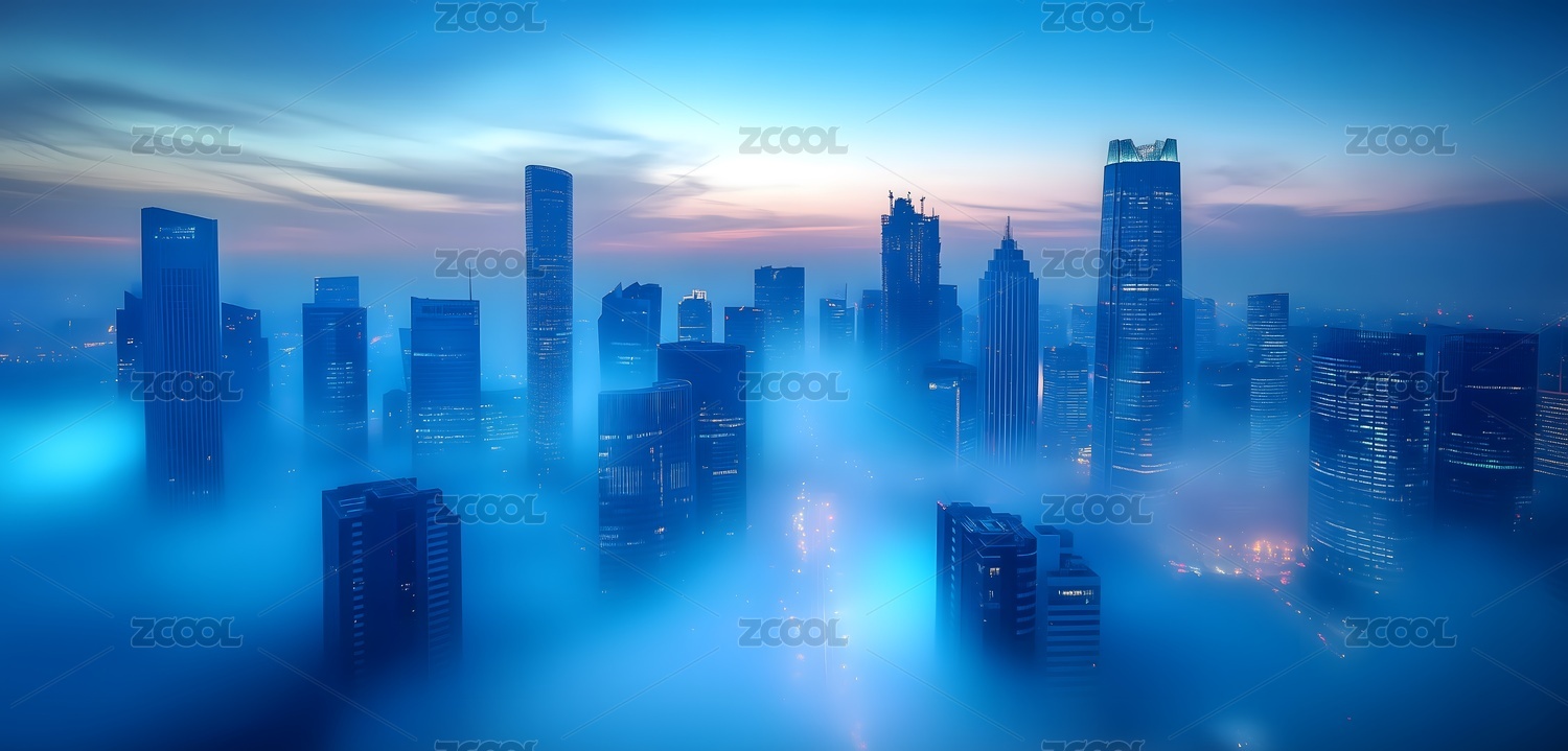云雾笼罩的现代城市