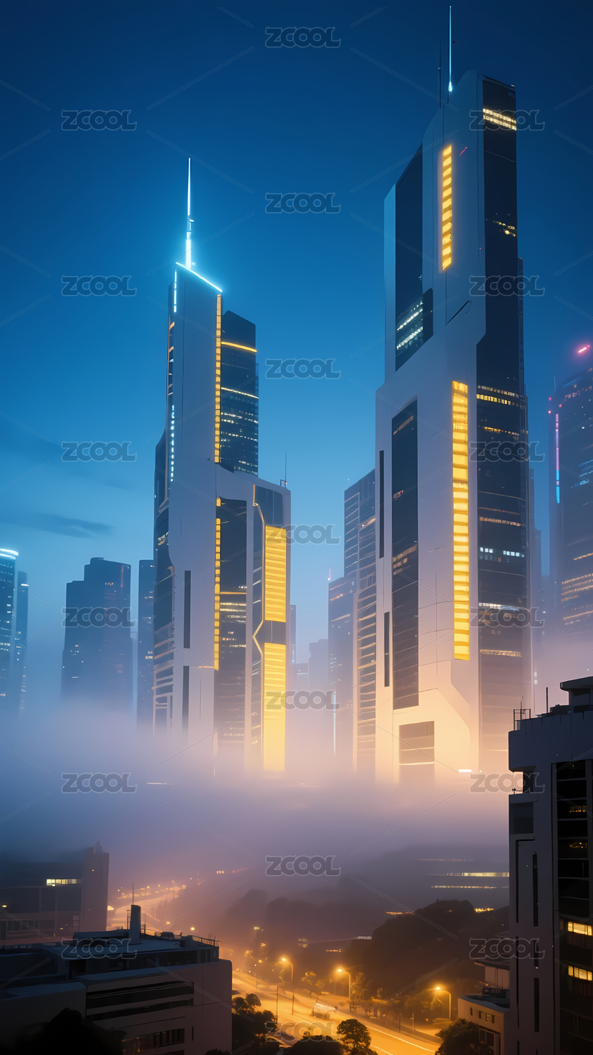 雾中的未来城市