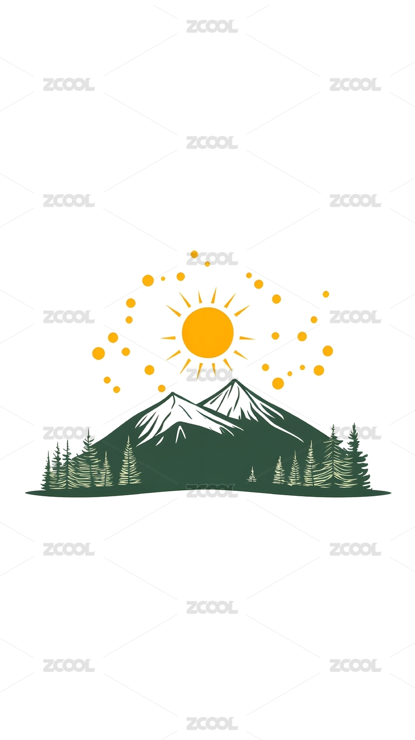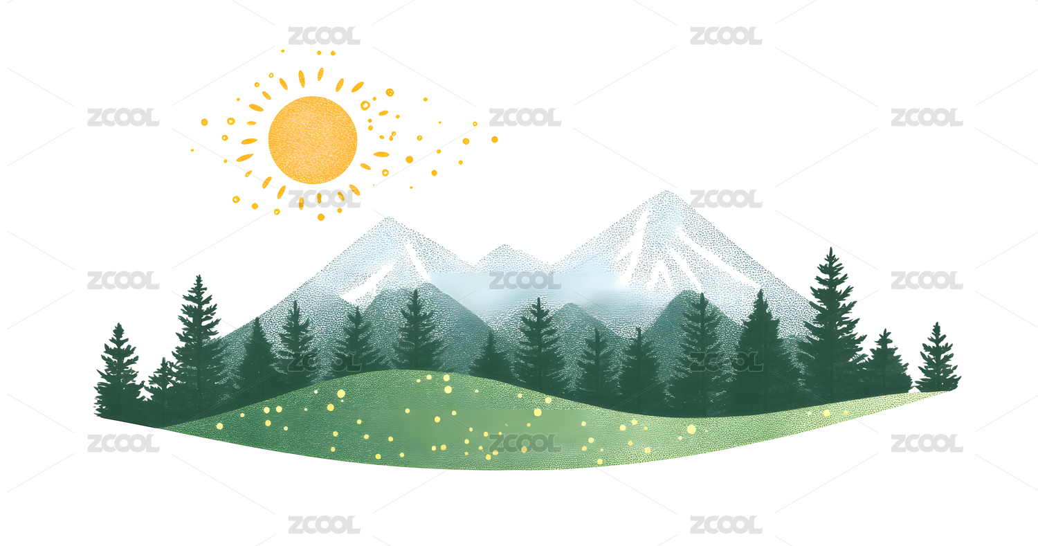 插画,风景,自然,艺术,简约,绿色,清新,山,宁静,太阳