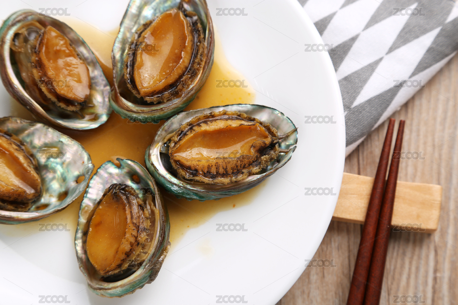 中国美食海鲜晚餐美味的鲍鱼特写
