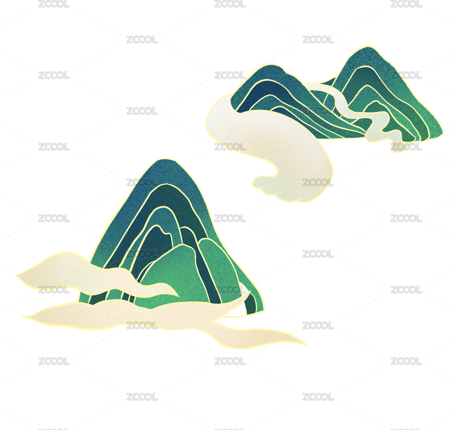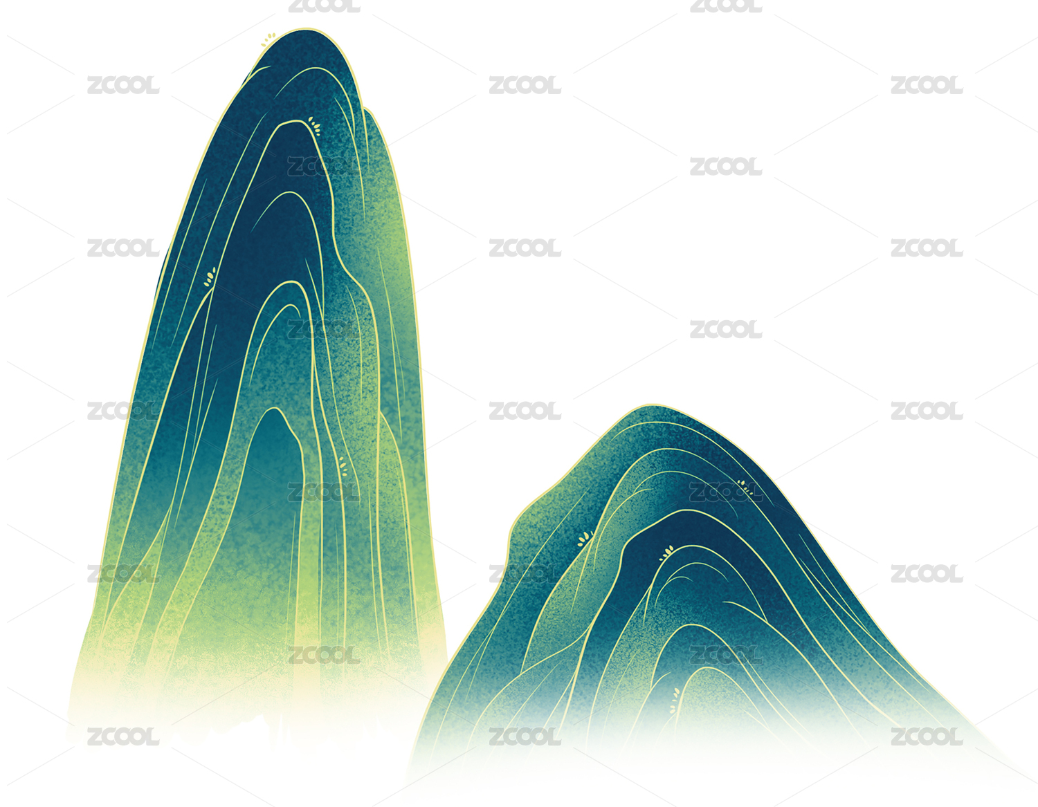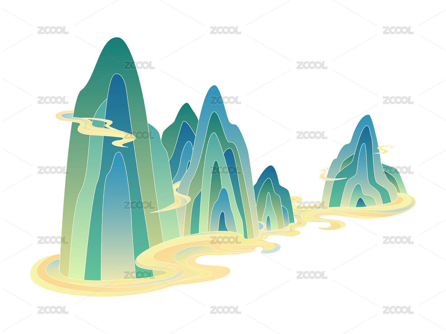 山脉,山川,创意,绿色,渐变,国风,国潮,自然,中式