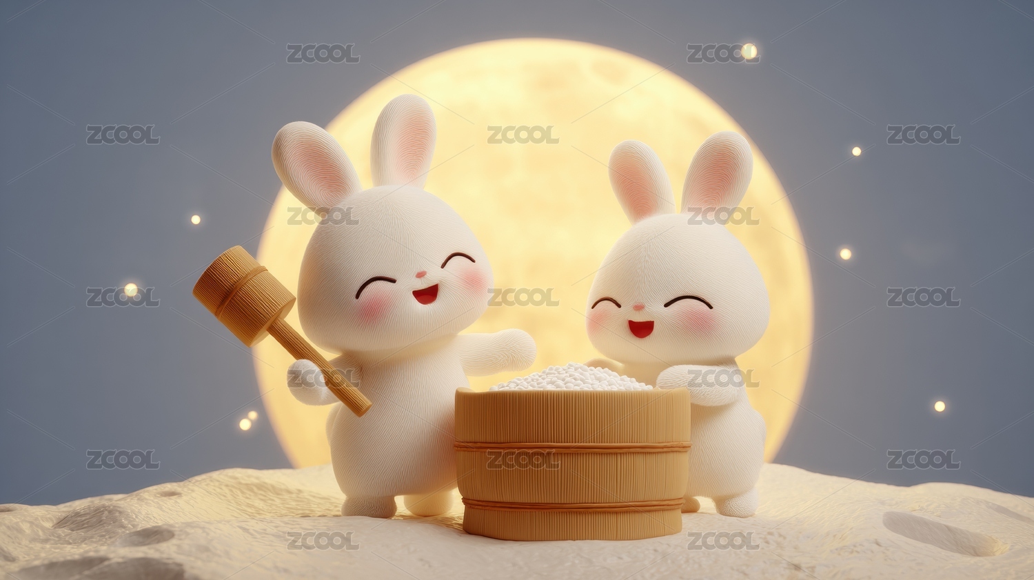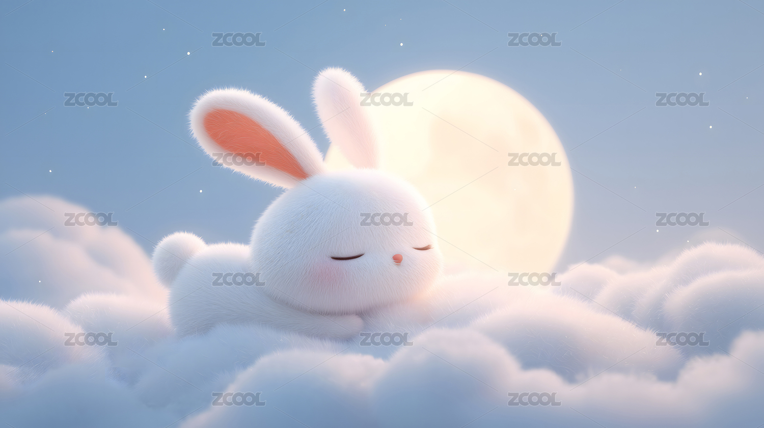 中秋,中秋节,月亮,月,圆月,蓝色,兔子,可爱,3d,卡通