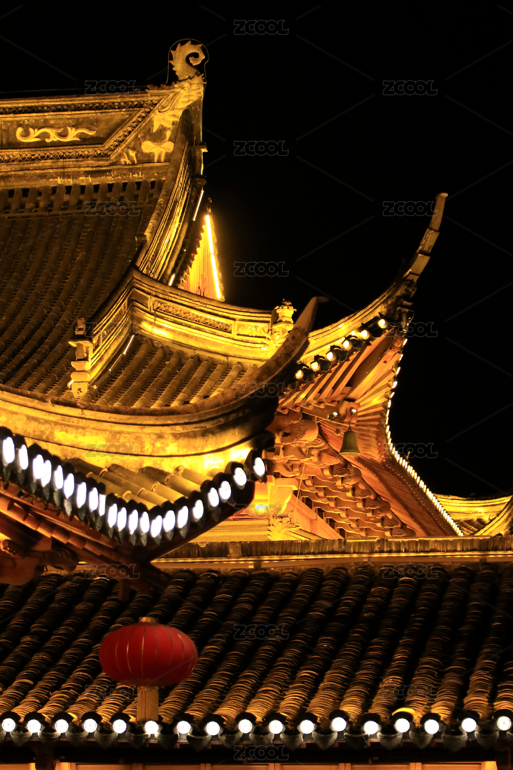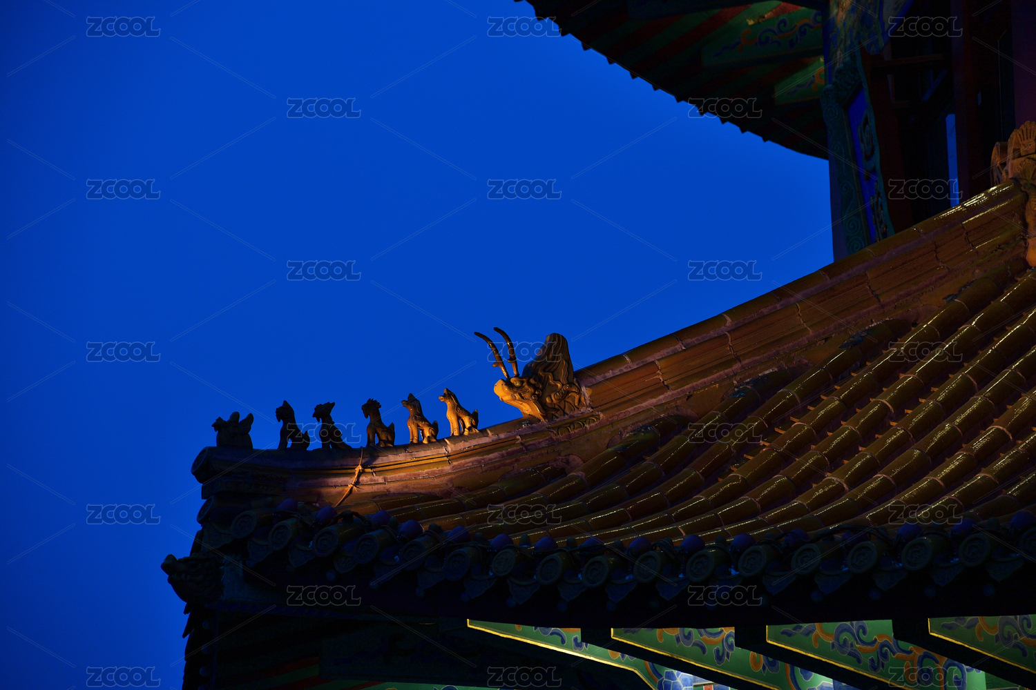 唐山河头老街夜景,古建筑屋脊上的祥瑞之鹿