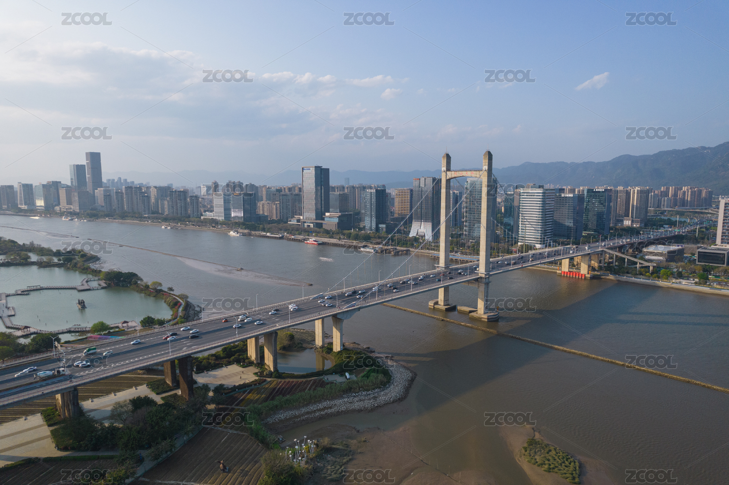 航拍福建福州闽江大桥跨江公路桥地标建筑
