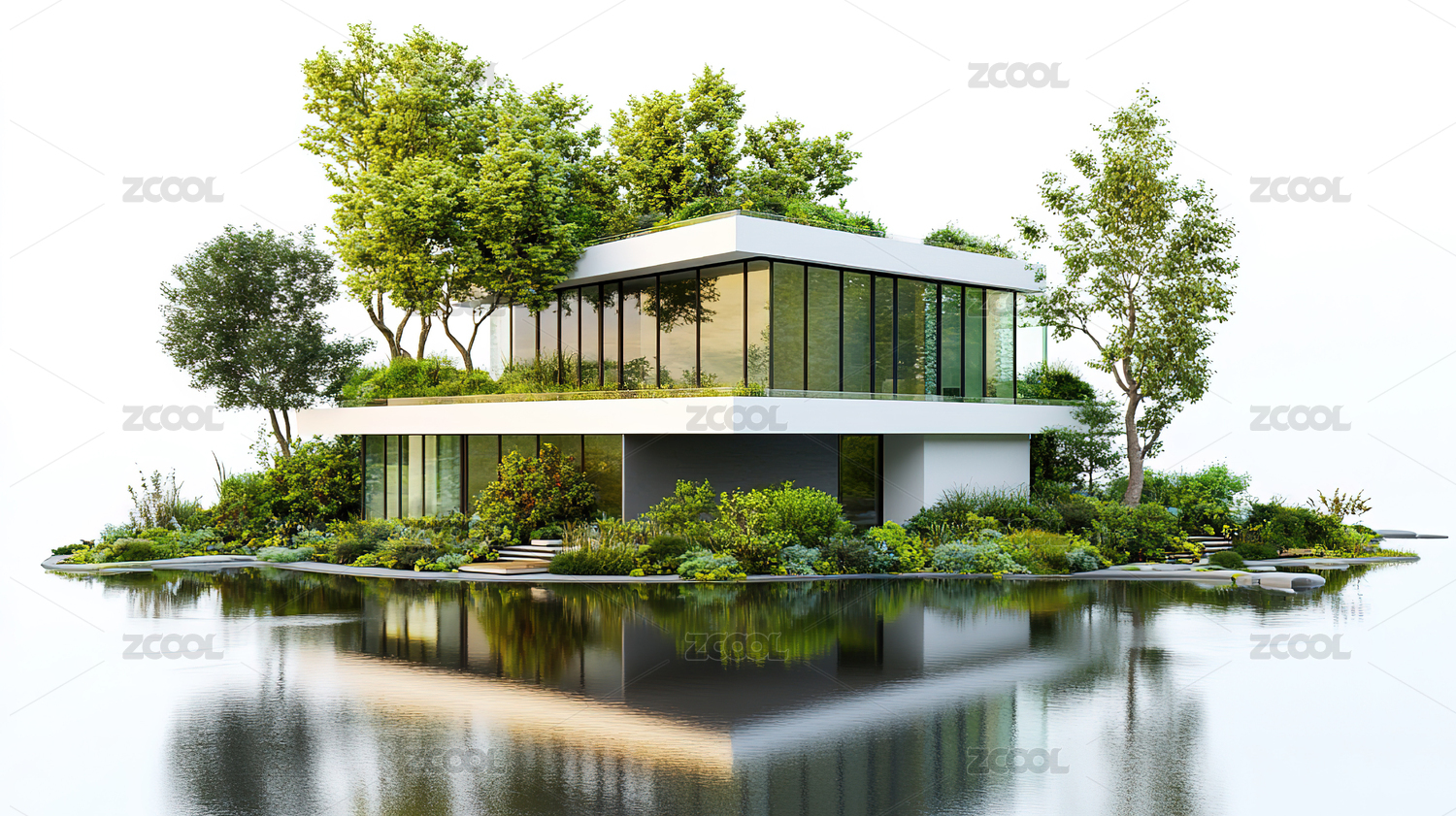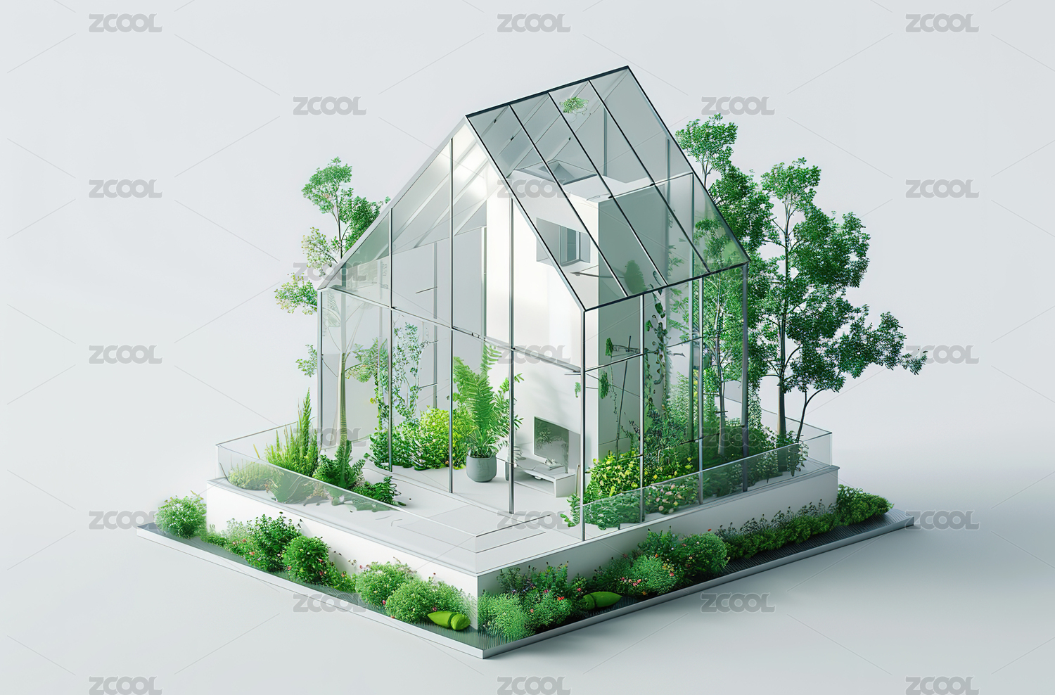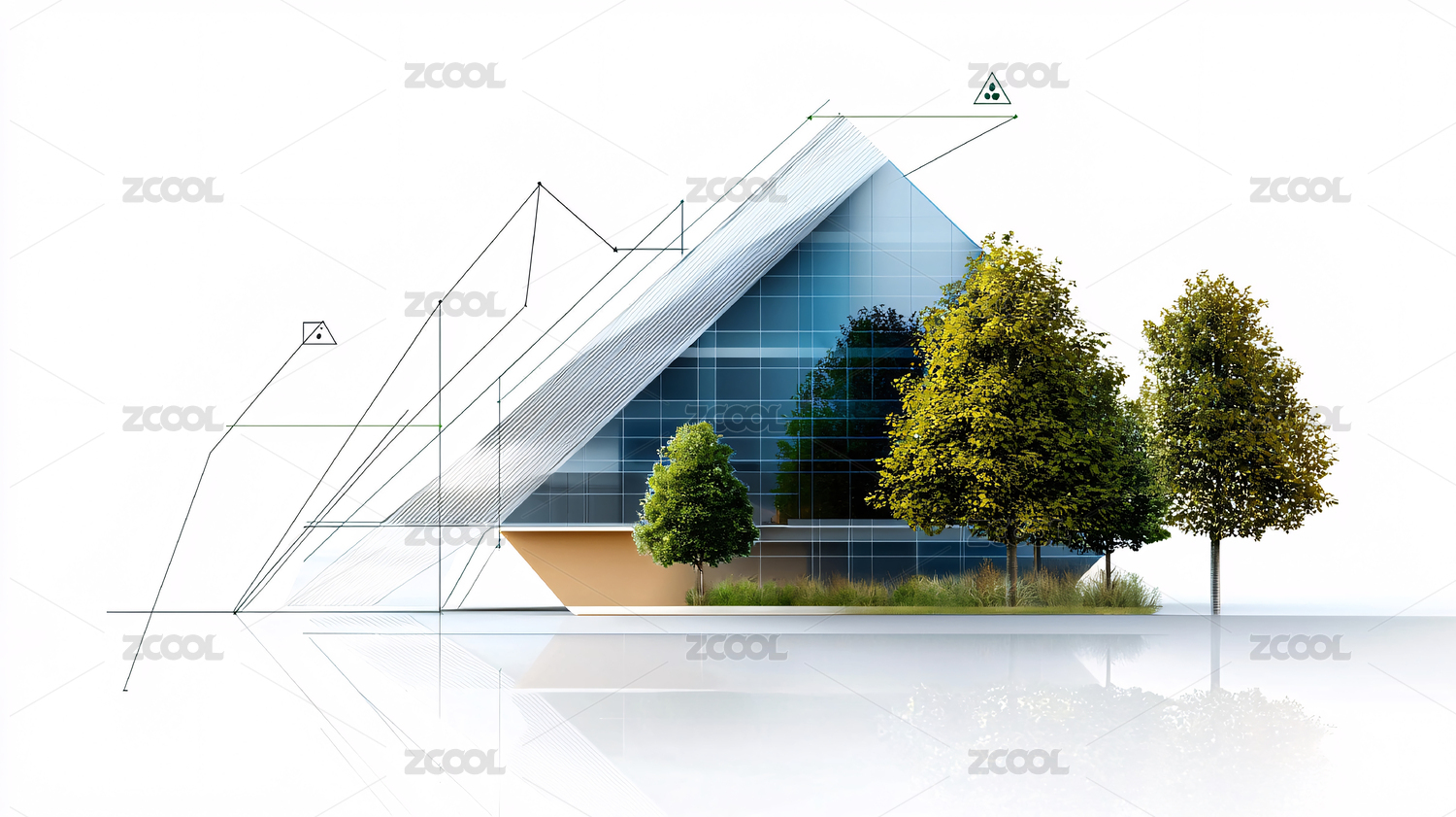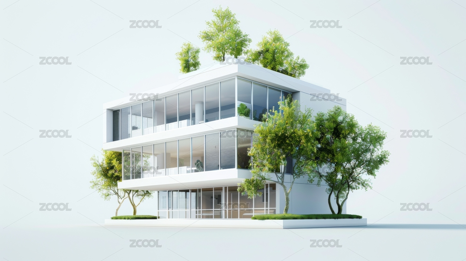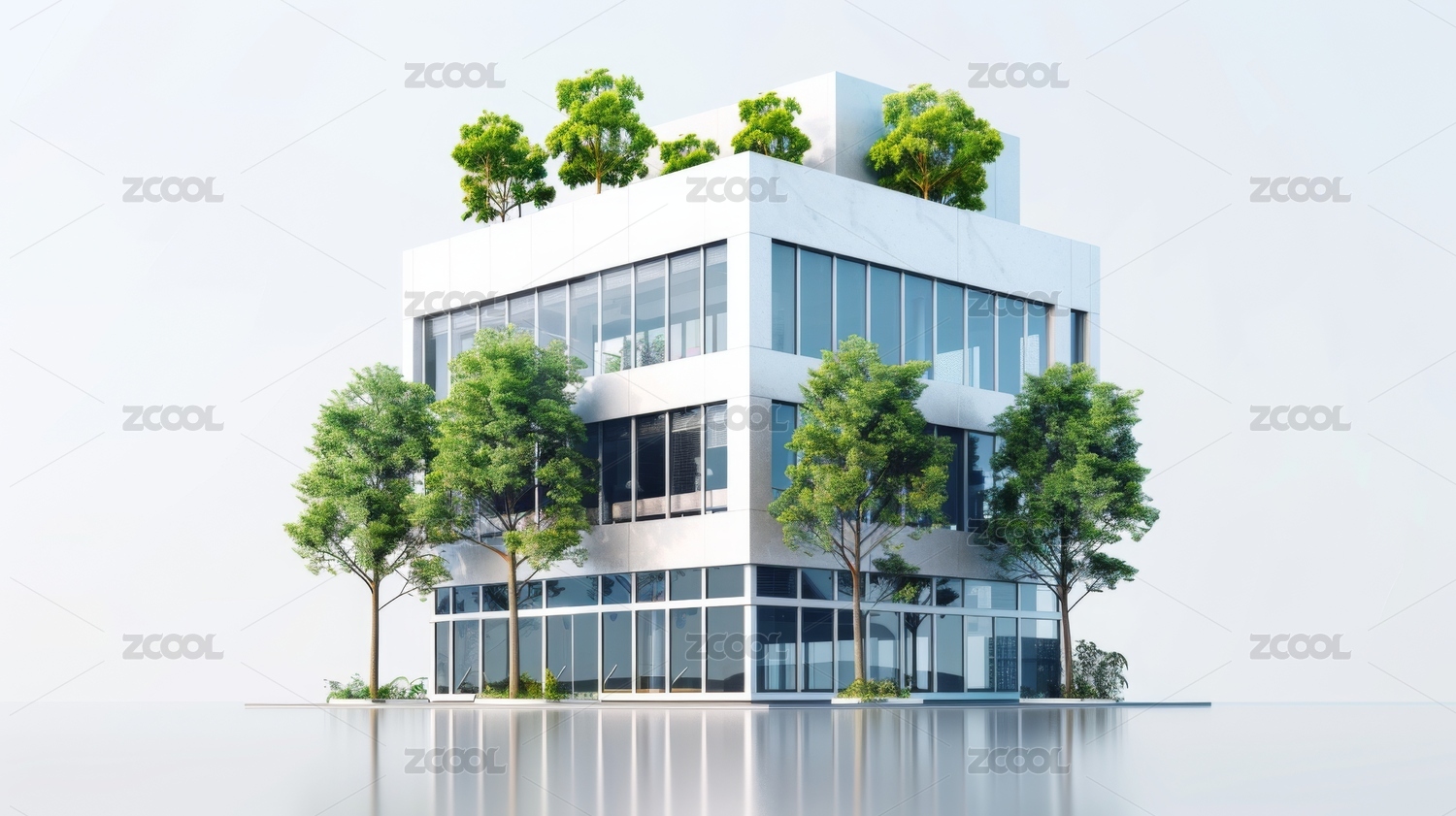 商务中心高端写字楼3D渲染插图,玻璃幕墙